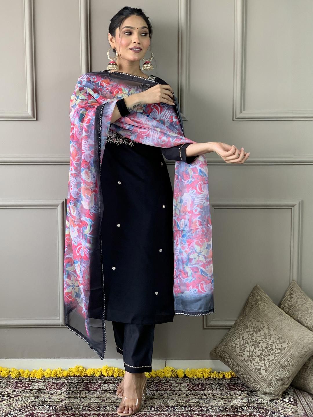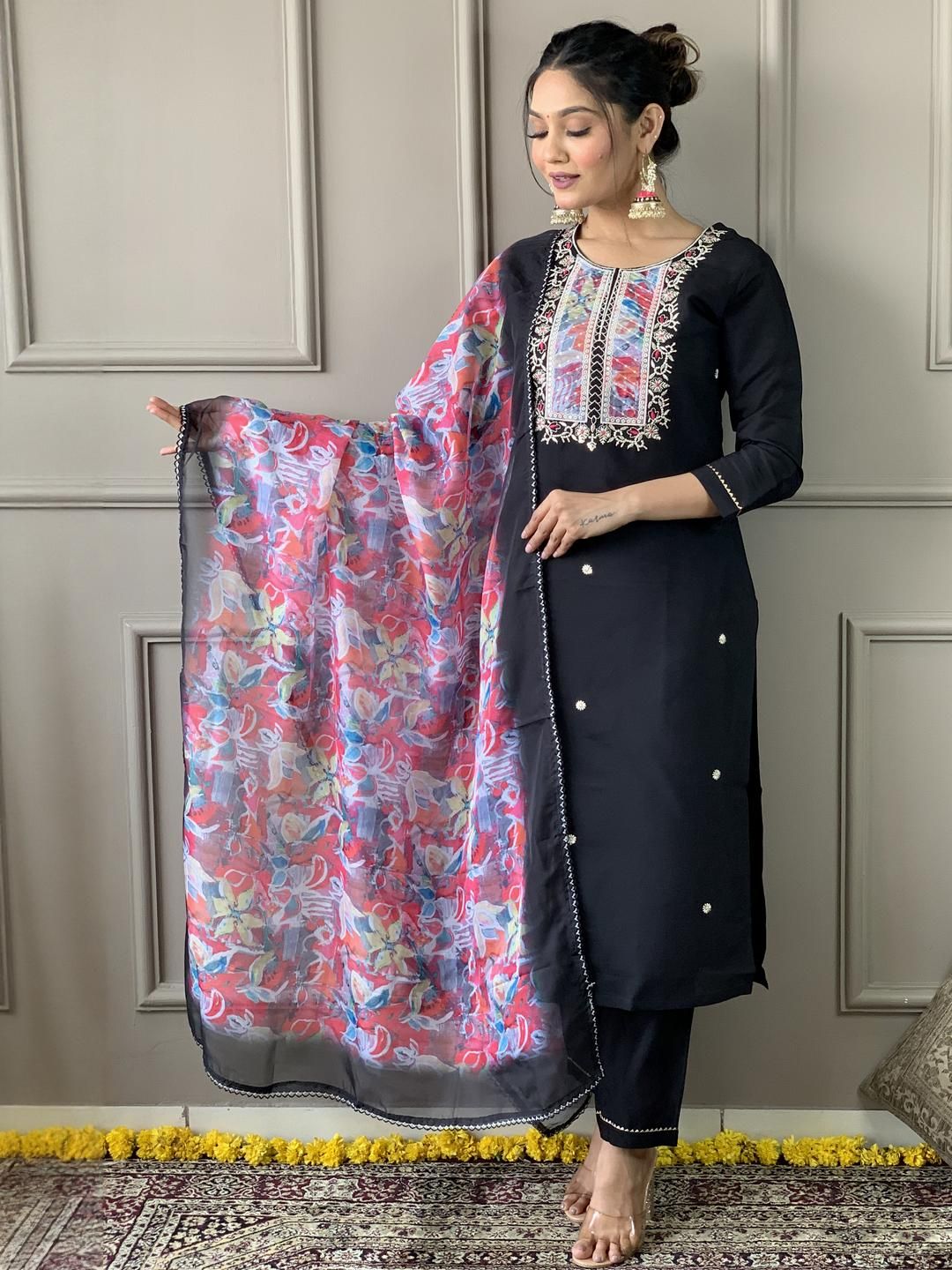 CaniBani Women Viscose Rayon Embroidered Kurta Sets