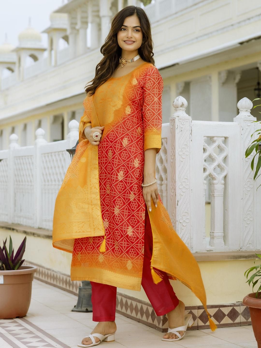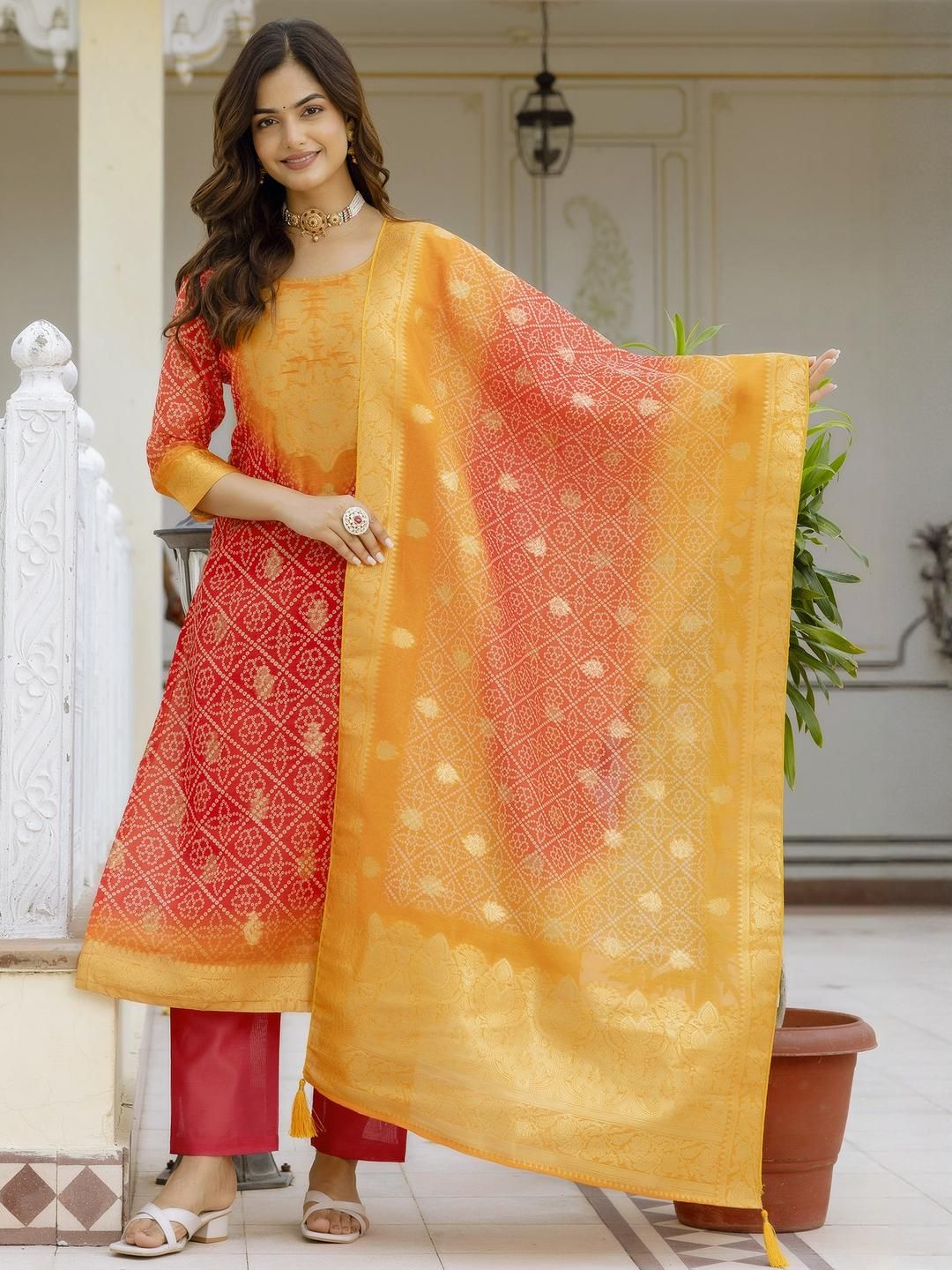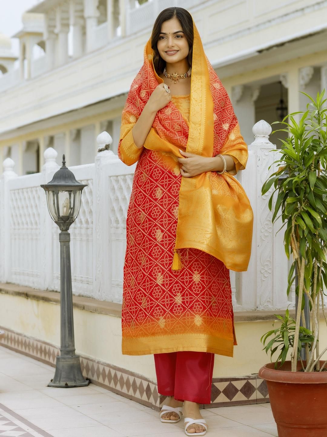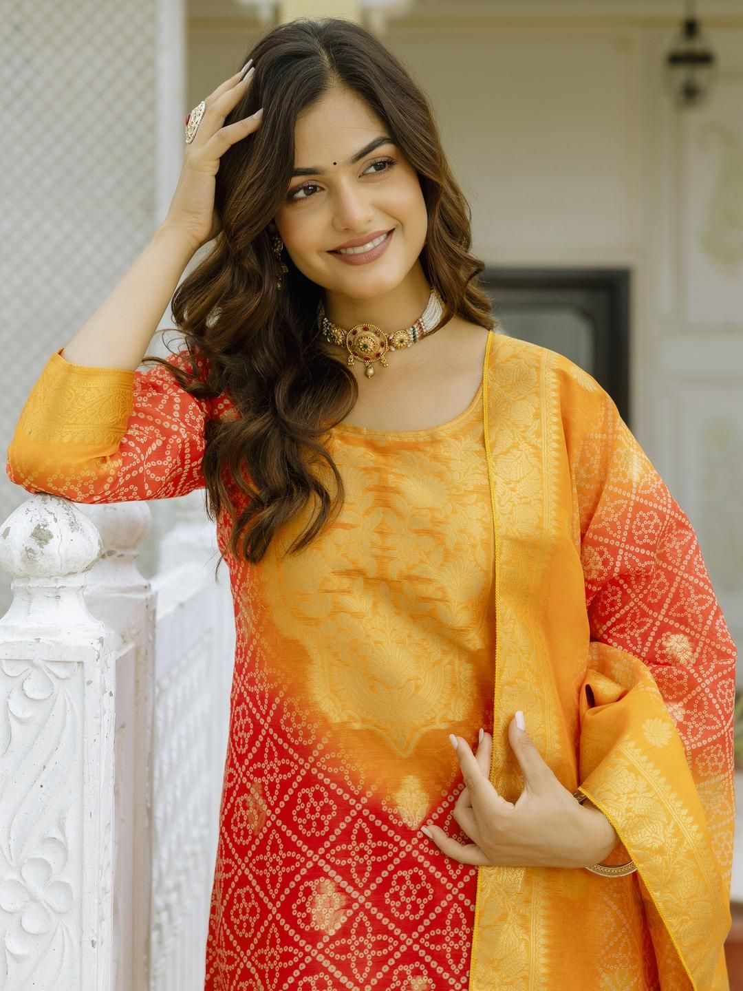 CaniBani Women Yellow Chanderi Silk Kurta Sets