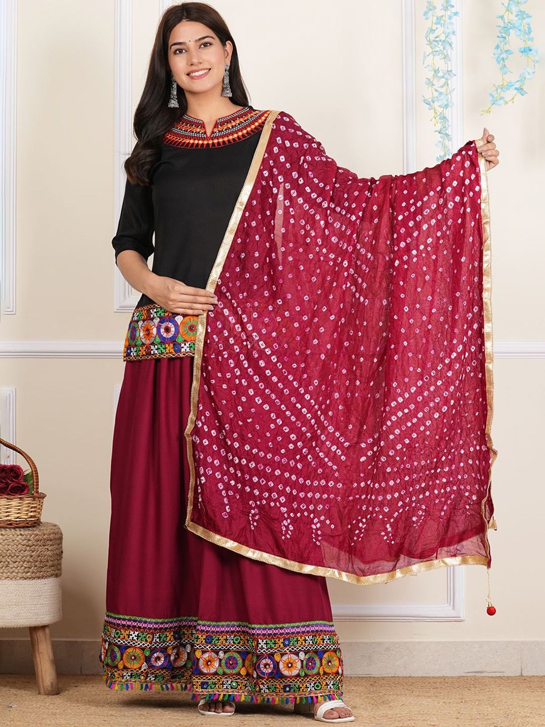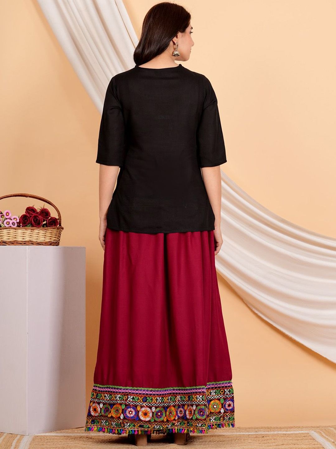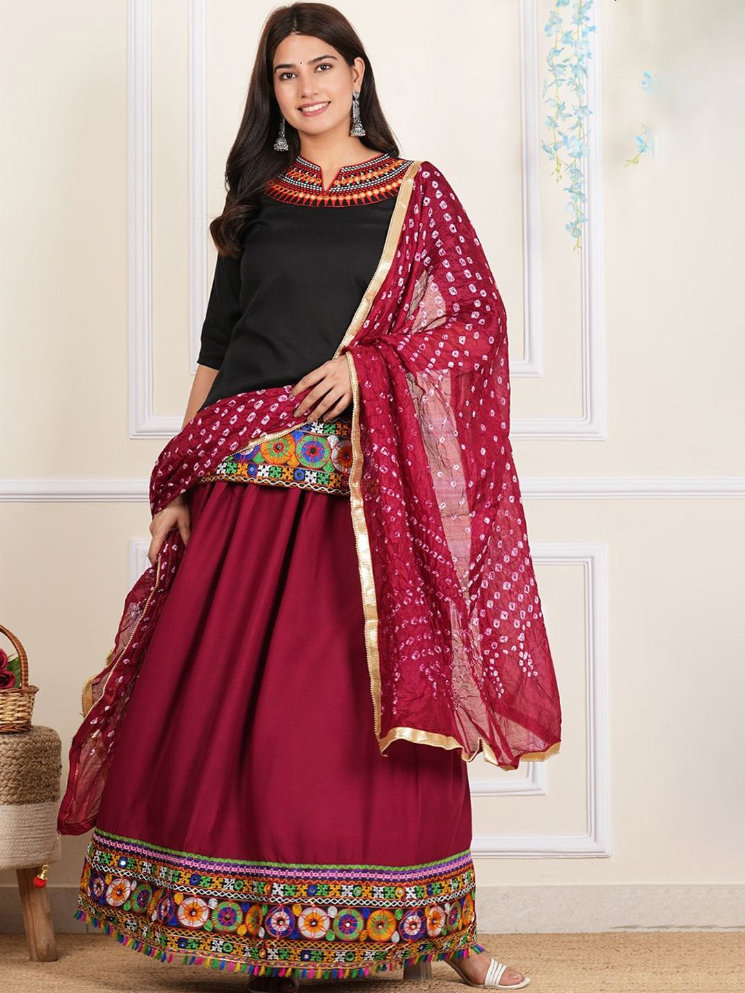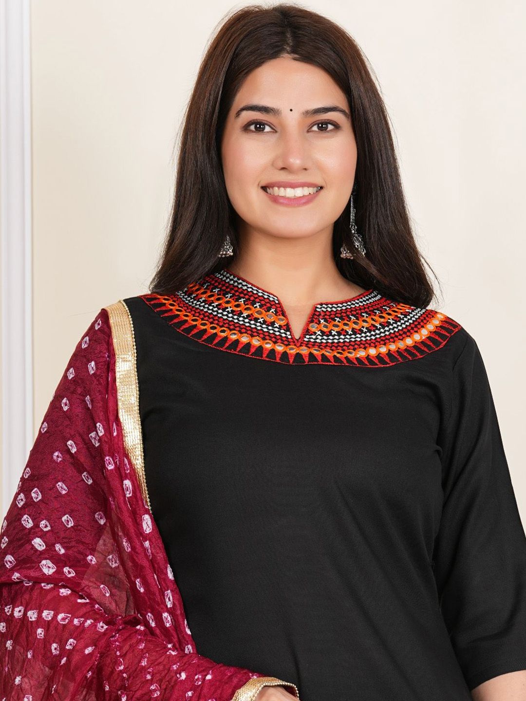CANVIR Floral Embroidered Thread Work Straight Kurti With Skirt & Dupatta