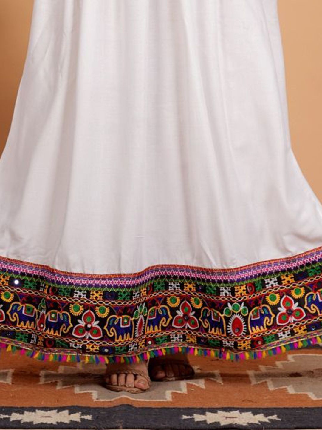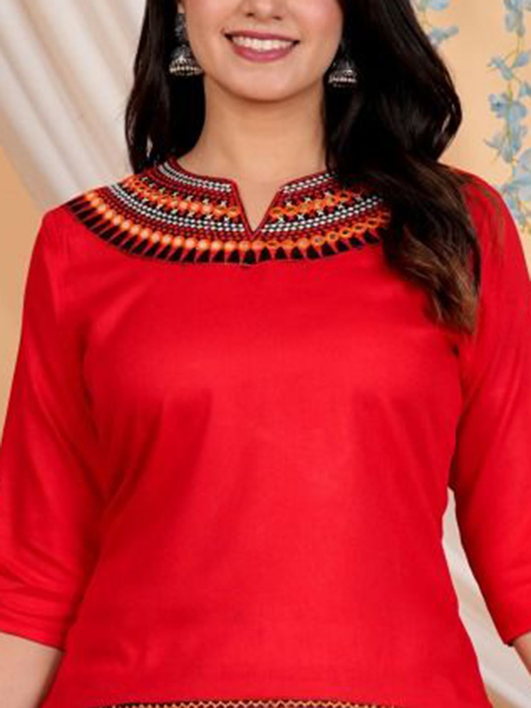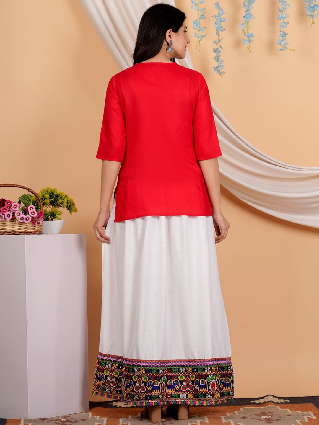 CANVIR Women Floral Embroidered Regular Top with Skirt