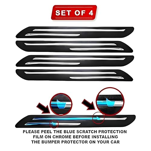 Car Bumper Protector Guard with Double Chrome Strip Set of 4 Pieces, Black Sutaible for MG Windsor.