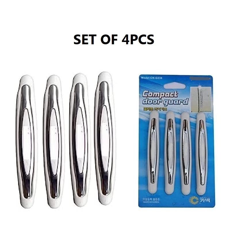 Sleek and Stylish design which enhances overall look Of the car. It protects the car doors for scratches and dents and damage due to collision of doors in parking etc. Protect your car door from chips and scratches by using compact car door guard (White Colour). Car door guard suitable for all cars. Package contents set Of 4 piece. Easy to fit on car doors sleek affixed with adhesive tape enhance car exterior. When installed door guard on front and rear door. Long lasting and high quality material.