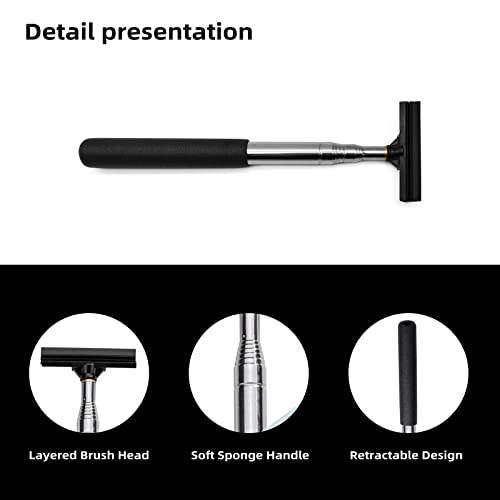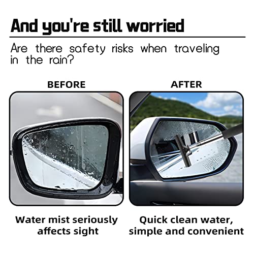 ?High Quality Material?The top wiper of the rear-view mirror wiper is made of natural rubber with comfortable stainless steel handle, the brush head is made of TPR material which is soft and harmless to your mirrors. ?Retractable Design?The wiper is designed as extension, easy to clean the left and right rear view mirrors, with a maximum length of 97cm/38inches, you can easily scrape the water off the mirrors even when you are in the driver's seat on the other hand. 21cm(Min.) to 97cm(Max.) ?Soft Sponge Handle?The handle covering the cold metal handle comforts you in cold weather and is wrapped with the handle is wrapped with soft sponge, which is convenient and comfortable to use, soft rubber squeeegee cleans mist and fog on the mirror surface without scratches. ?Easy To Clean?Driving without fear of rain,wipe the water quickly, and the operation is simple and convenient,after wiping the water off the mirrors, just wipe the wipers with a paper towel,small and portable, it is easy to carry and store anywhere in the car. ?Widely Applicable?It's dangerous for a driver to get off the car to clean them in dark rainy days while wiper enables you to finish cleaning without getting off, It can be used for fast water and mist removal of cars, trucks, motorcycles, SUVs, front windows, side windows and rear windows, as well as daily household glass cleaning.