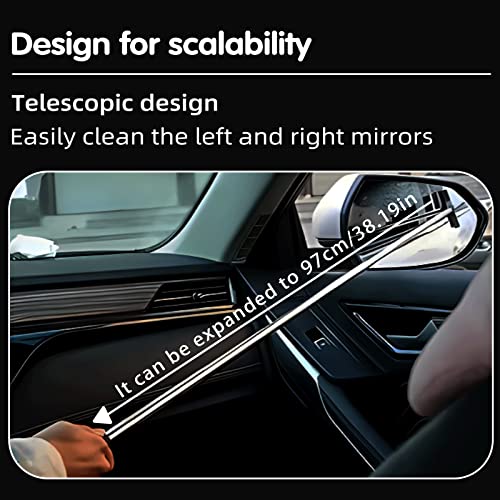 Car Mirror Wiper, Telescopic Auto Mirror Squeegee Cleaner, 97cm Long Handle Car Cleaning Tool Portable Cleaning Tool for All Car/SUV/Truck,Universal Car Accessories(Black)