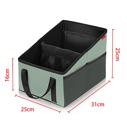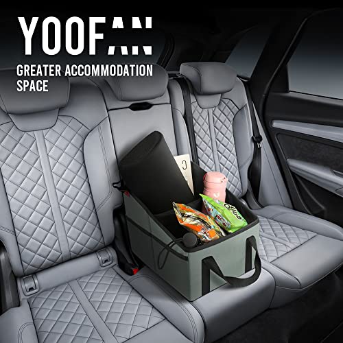 DESIGN FOR CAR STORAGE ? YOOFAN Universal Foldable Car Back Seat Storage Organizer, Keep a clean and healthy environment of vehicles interior. Suitable for any type of vehicle's front seat or back seat like Car / Truck / SUV / Minivan / Van. Widely used in traveling, car storage, home storage, or used as a office desk tidy organizer. MULTIPLE STORAGE ? One detachable interlayer in the middle of the back seat organizer connected with a velcro strap, when it removed, it will turn to be a larger capacity storage organizer, meanwhile, the removable inter layer is also a 4 clear mesh storage cup holders which can hold bottle, baby bottle, fold umbrella, sunglasses etc. Great back seat cup holder for car. STURDY CONSTRUCTION ? Quality oxford super strong material with high strength suture cardboard, makes YOOFAN car seat organizer has good waterproof / dust-proof effect, durability and superior abrasion resistance. NON-SLIP DESIGN ? In order to fasten the front seat organizer stable on the car seat, please take the seat belt pass through two oxford straps of the organizer back part, then insert it into the cassette of the seat belt. Meanwhile, the bottom of car storage organizer use non-slip material which can increase the friction with the seat, help to stay in the place. APPROPRIATE SIZE ? YOOFAN car console organizer with portable size (2.6 x 9.84 x 9.84 inch), which can save interior car space. With 2 handle straps, easy to carry and storage. Great travel gear for both kids and adults.