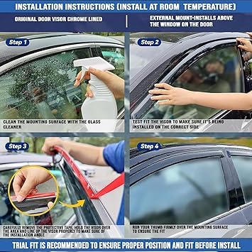 PRODUCT COMPATIBLE ONLY FOR WAGON R (2019-2024) Material: High quality ABS plastic, Color - BLACK Quantity- 4 piece/set Unbreakable Durability: Crafted from top-quality, non-breakable materials, these visors are built to last. They provide reliable protection for your car windows, standing strong against the elements for years to come. Rain Protection: They deflect rainwater away from the window, reducing interior moisture and preventing raindrops from splattering onto the driver and passengers. Durable Materials: Car door visors are typically made from robust materials like acrylic or polycarbonate, ensuring long-lasting performance and protection. All-Weather Defense: Whether it’s a sudden downpour, strong winds, or the scorching sun, these visors have got you covered. They ensure that you can drive comfortably by shielding you from rain, wind, and harsh sunlight, making every journey more enjoyable. Sleek and Stylish Upgrade: Beyond just functionality, these visors add a touch of elegance to your vehicle. Their sleek design seamlessly blends with your car’s exterior, giving it a refined, polished look that stands out on the road. Effortless Installation: You don’t need to be a mechanic to install these visors. They’re designed for quick and easy installation, adhering securely to your windows without any complicated tools or processes. Reliable All-Weather Performance: No matter the season, these visors perform consistently, keeping your car’s interior dry and comfortable. They’re engineered to handle everything from heavy rain to intense heat, ensuring your ride is always protected.