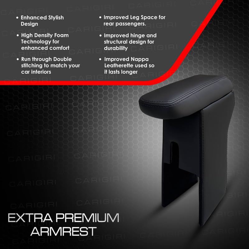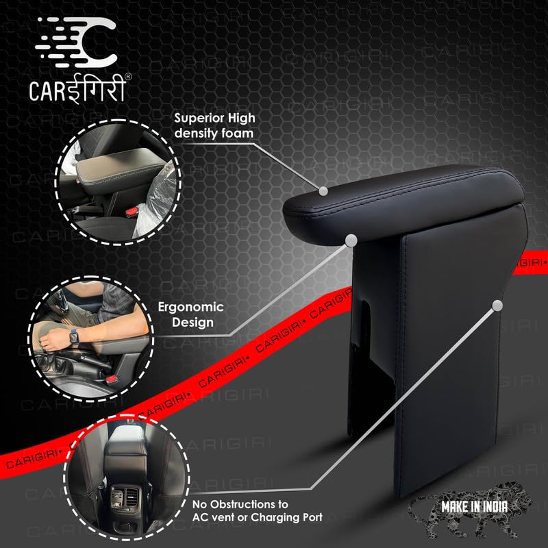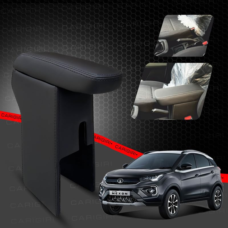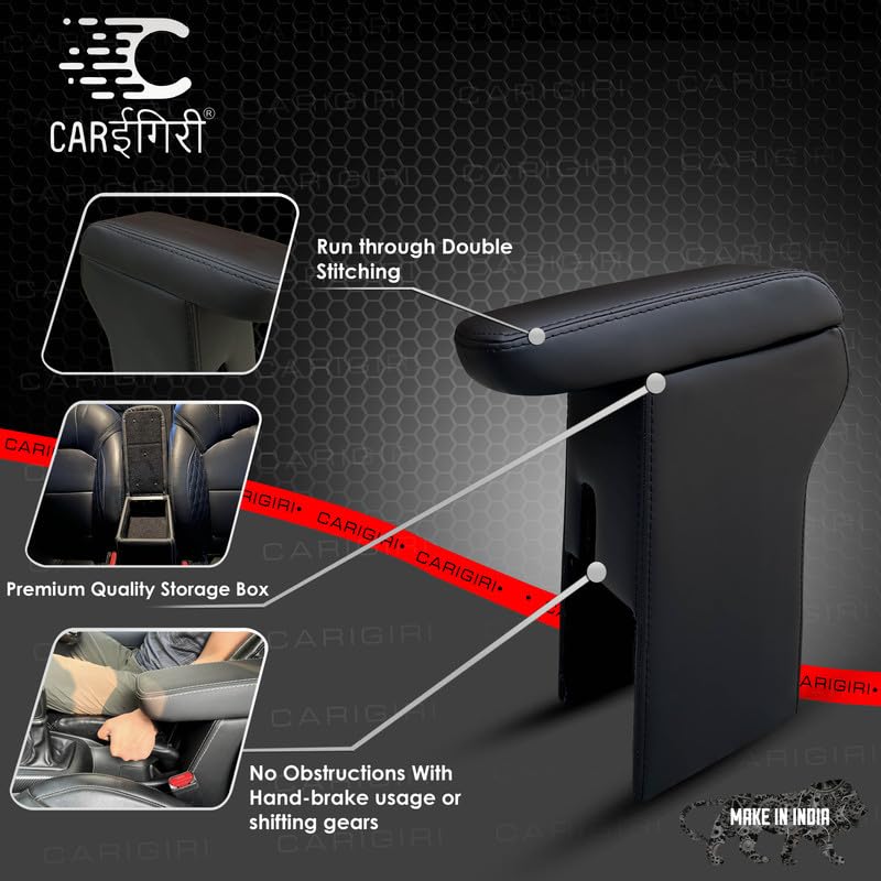 Carigiri Premium Finish Car Armrest with Storage Box And High Density Moulded Foam For Tata Nexon (Models-2017-2024) (Black With Black Double Stitching,Nappa Leatherette)