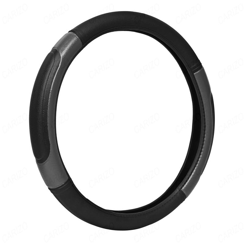 CARIZO Car Steering Wheel Cover | Microfiber Leather | Breathable, Anti Slip | Odourless | Patch Series | Black & Grey for Hyundai Eon (2011-2018)
