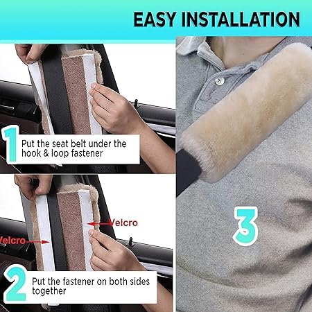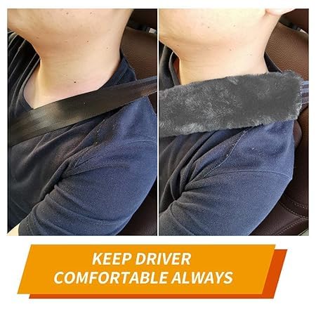 ??? Wide Application ?? Seat belt pads with the right amount of padding without being too bulky and too long which is suitable for your seat belts, also can be applied for your backpack, camera or any other types of shoulder bags, protecting and relieving your shoulders pressure. ??? Fashion and Practical Seatbelt Protector ?? Add fashion to your car interior and providing cushion in case of emergency braking to keep the shoulders of your family. ??? No Fade No Lose Fur ?? The car belt cover will keep you and your family's shoulders and clothes from the friction and irritation from the seat belt, keeping the neck comfortable and providing owners great driving experience, also encourages the kids to wear their seat belts. ??? Soft and Comfortable ?? These soft faux sheepskin seat belt shoulder pad is made of smoothness short staple fabrics faux sheepskin. ??? Simply to Use and Well to Fit ?? Open a piece of magic stickup on the underside of seat belt shoulder pad, fold over the seat belt and then close again; Easy to protecting yourself.