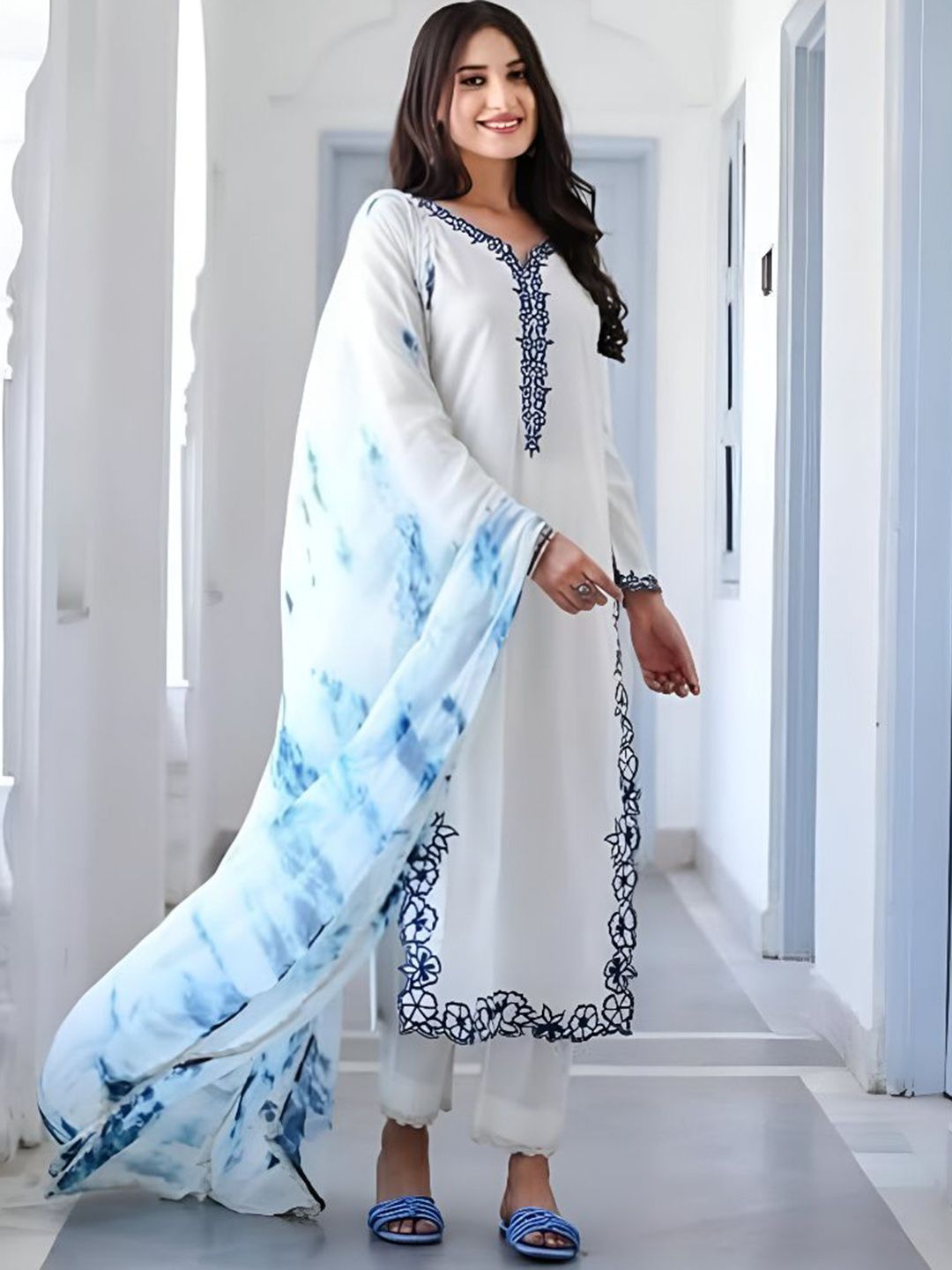 Buy this stylish CHANDALIYO Floral Yoke Design Thread Work Straight Kurta With Trousers & Dupatta at Marincart Nepal. This product offers great quality and value. Perfect for those looking for the latest trends in fashion. Get yours now at unbeatable prices.