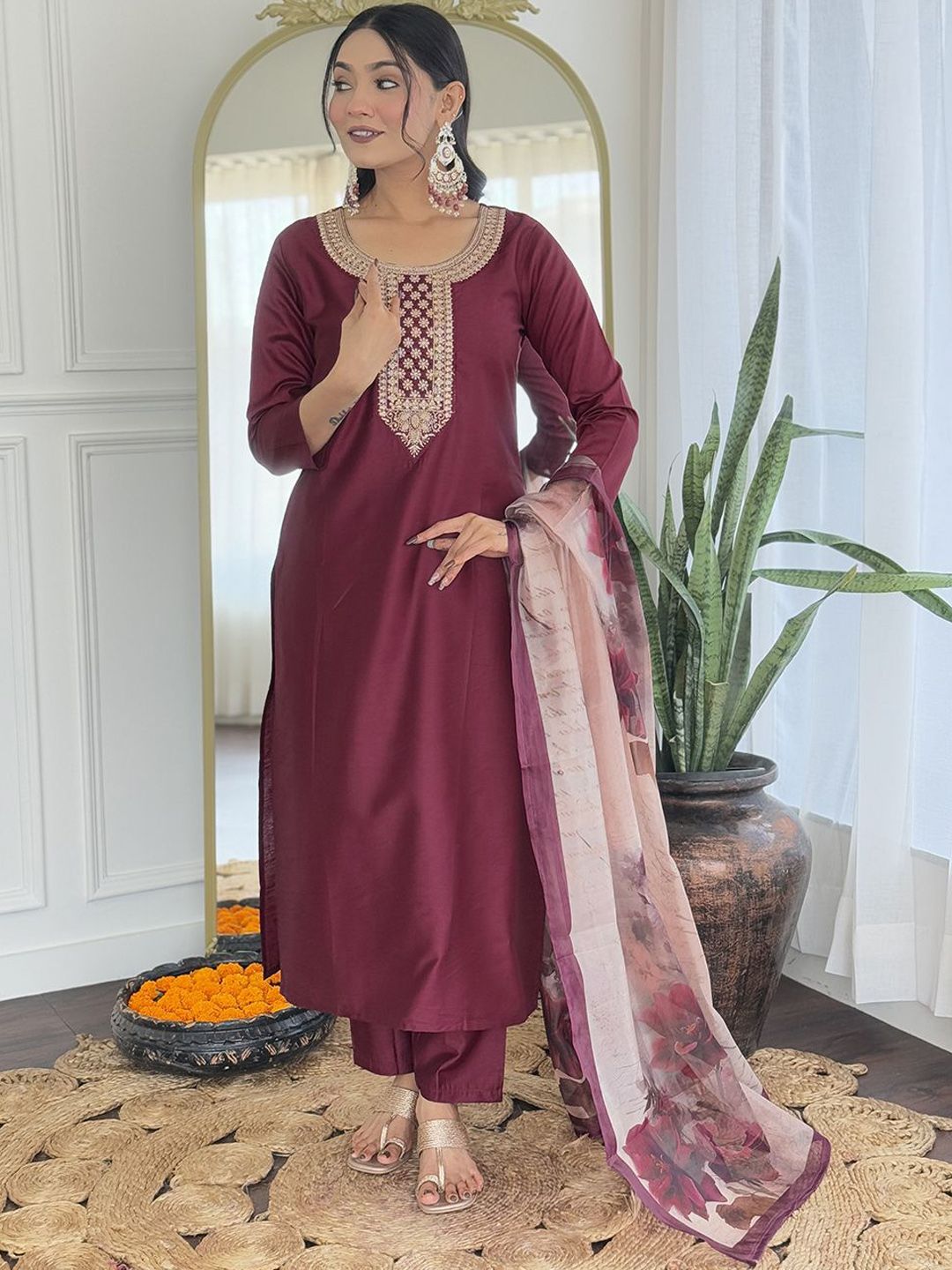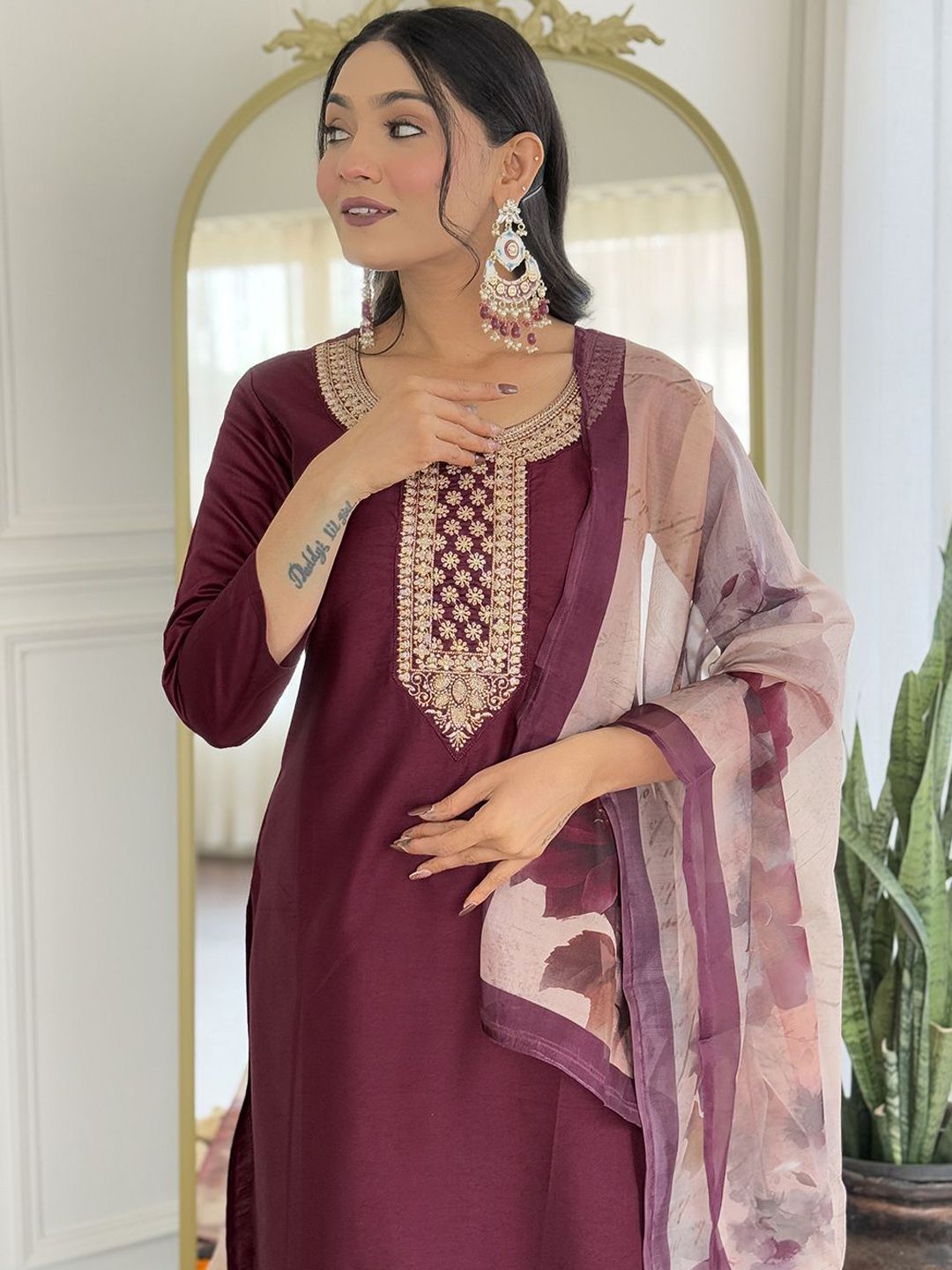 CHANDALIYO Women Ethnic Motifs Embroidered Kurta with Trousers & Dupatta