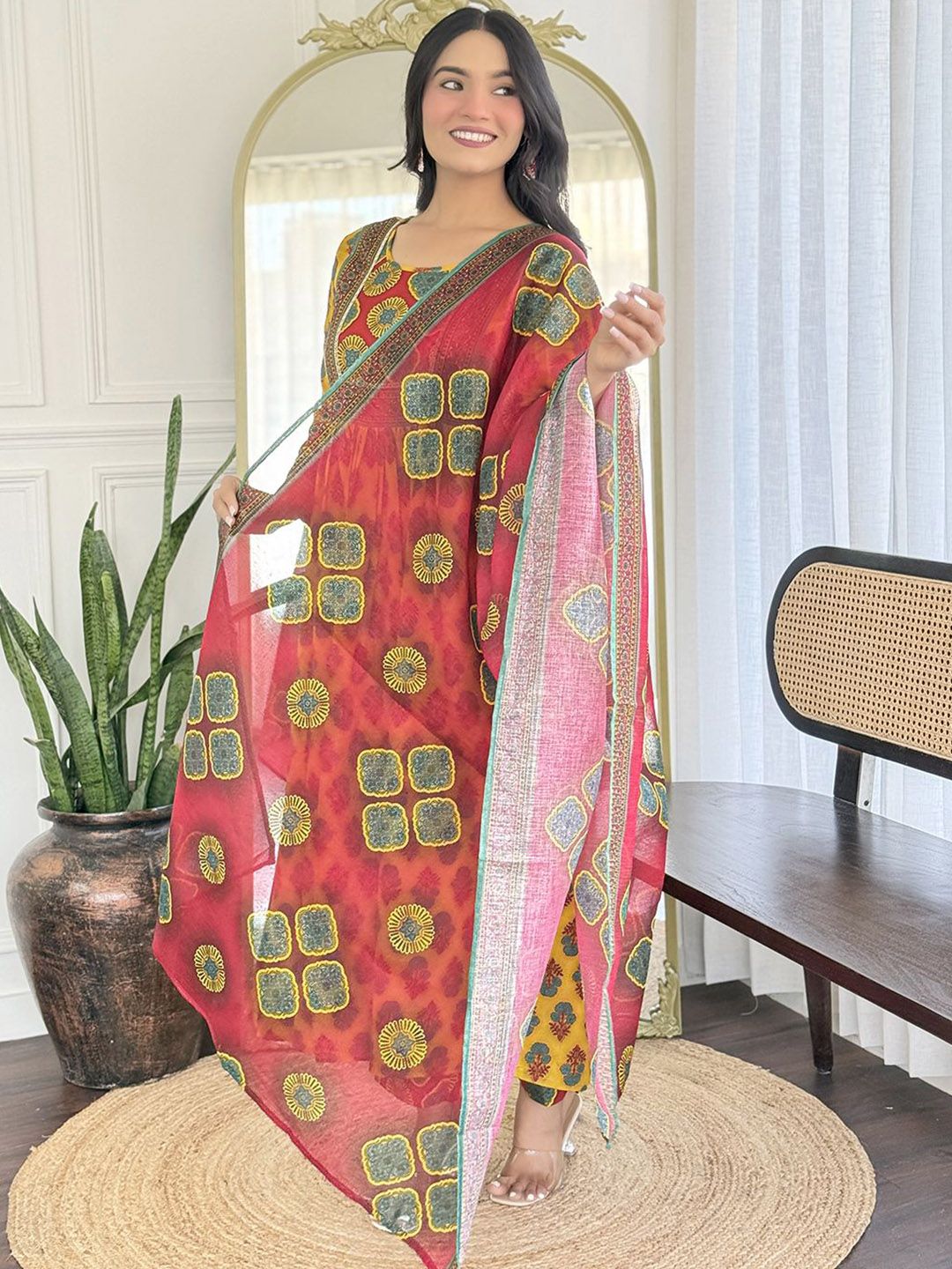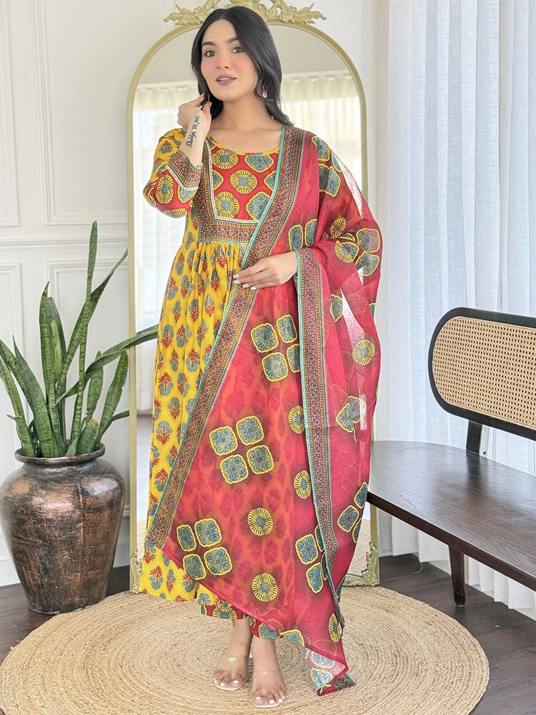 Buy this stylish CHANDALIYO Women Ethnic Motifs Embroidered Regular Kurta with Trousers & Dupatta at Marincart Nepal. This product offers great quality and value. Perfect for those looking for the latest trends in fashion. Get yours now at unbeatable prices.