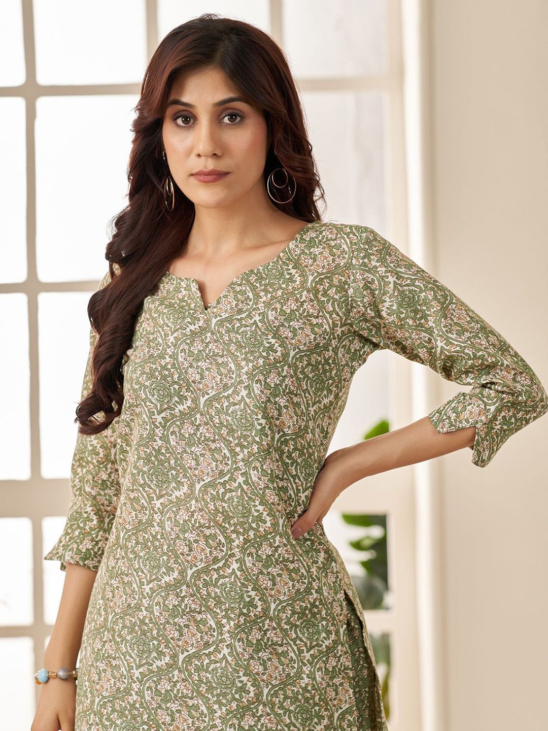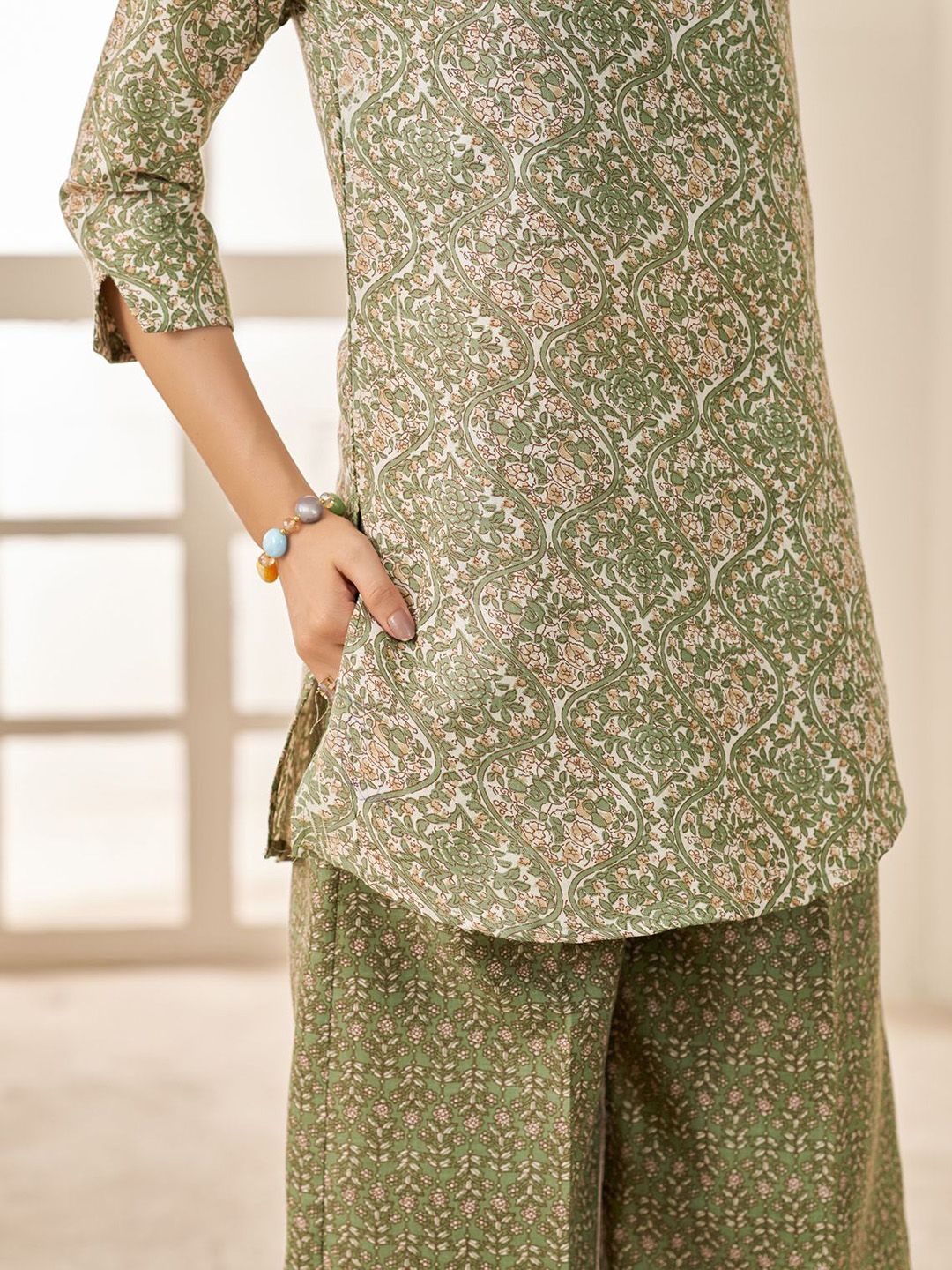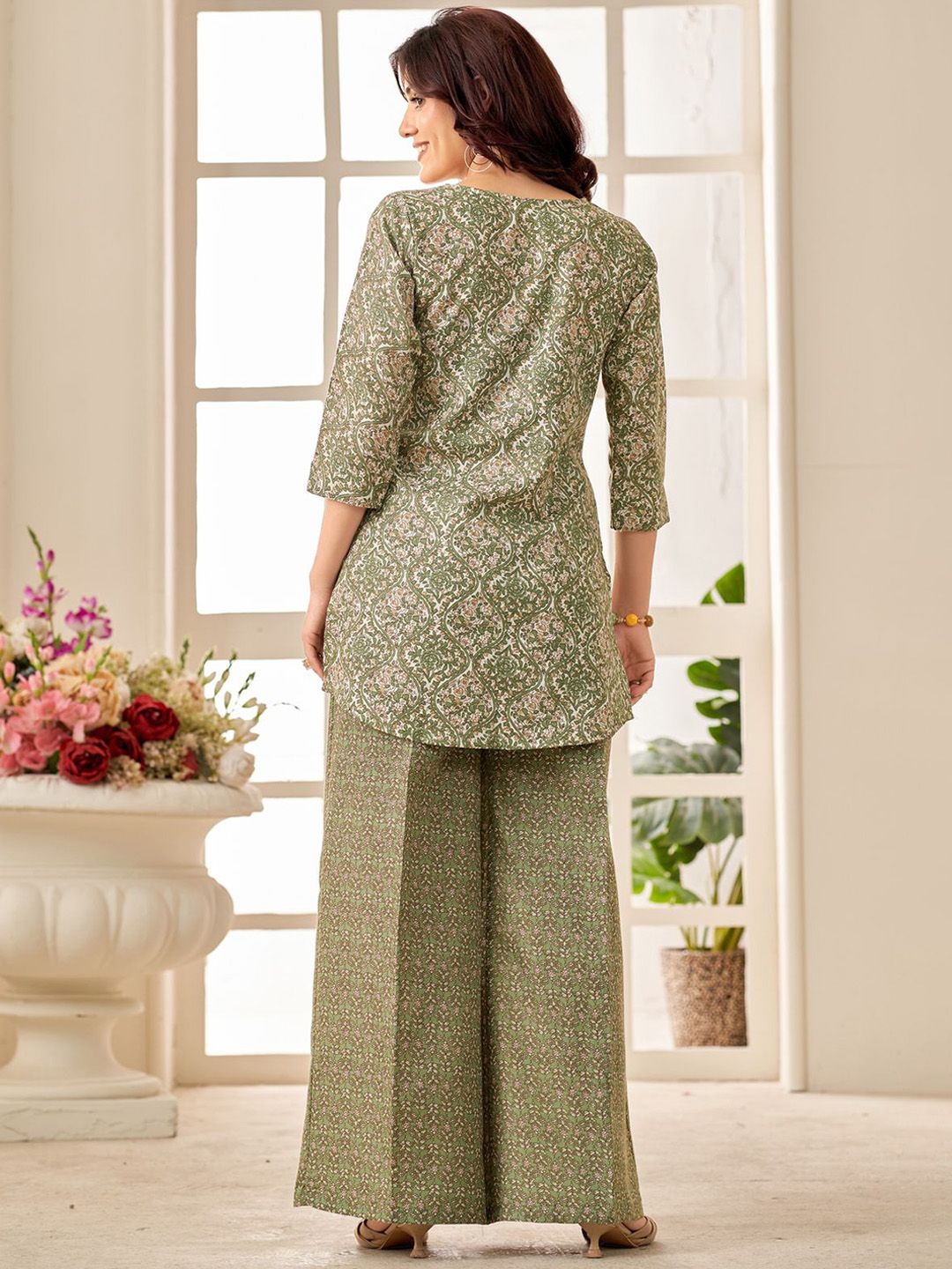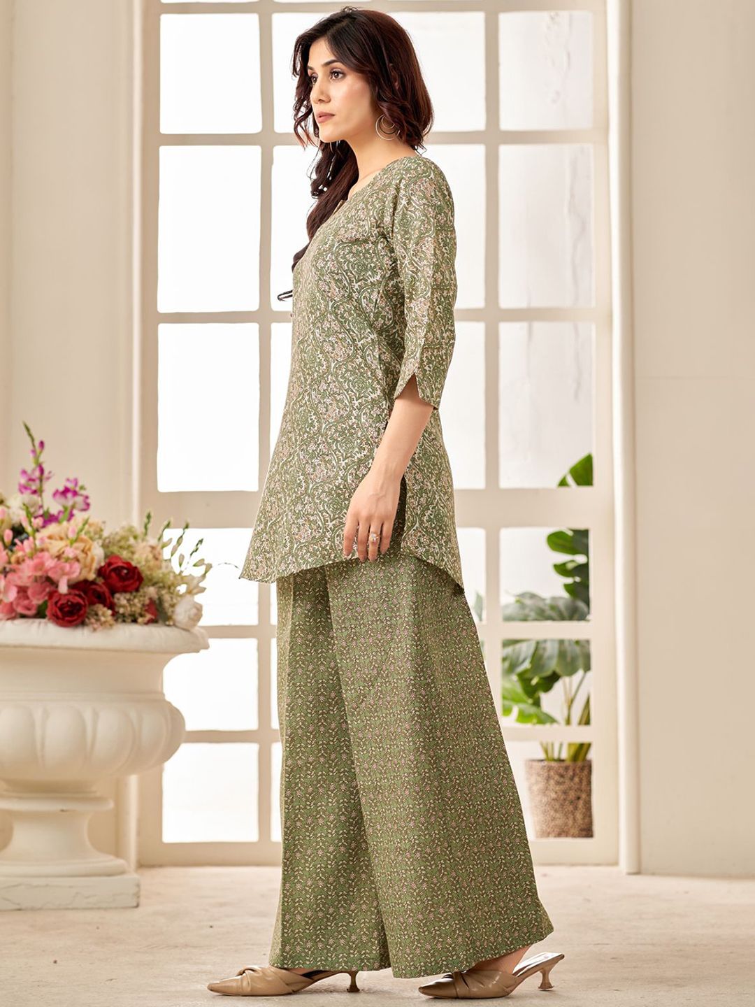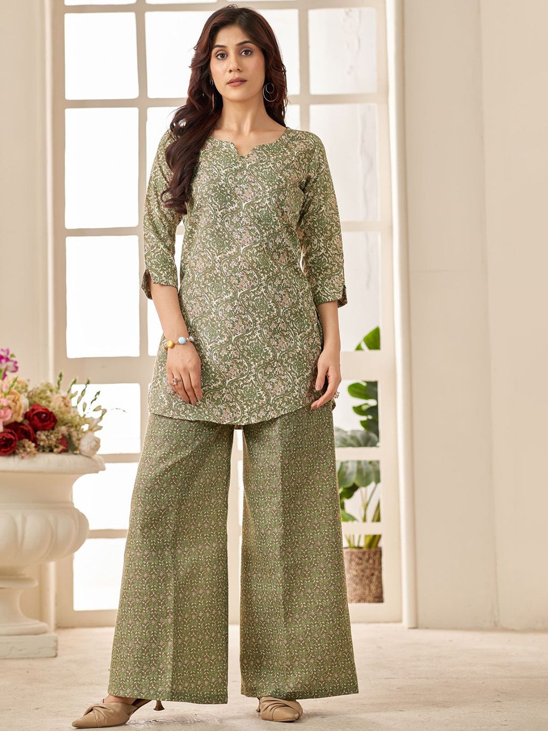 CHANSI Floral Printed Notch-Neck Straight Kurta With Palazzos