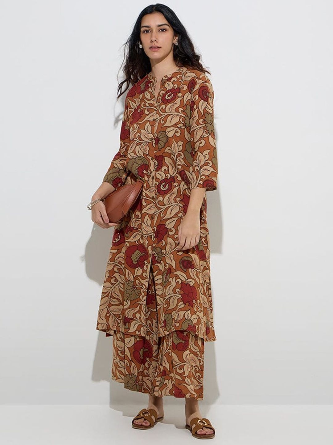 Charnest Floral Printed Mandarin Collar Straight Kurta With Palazzos
