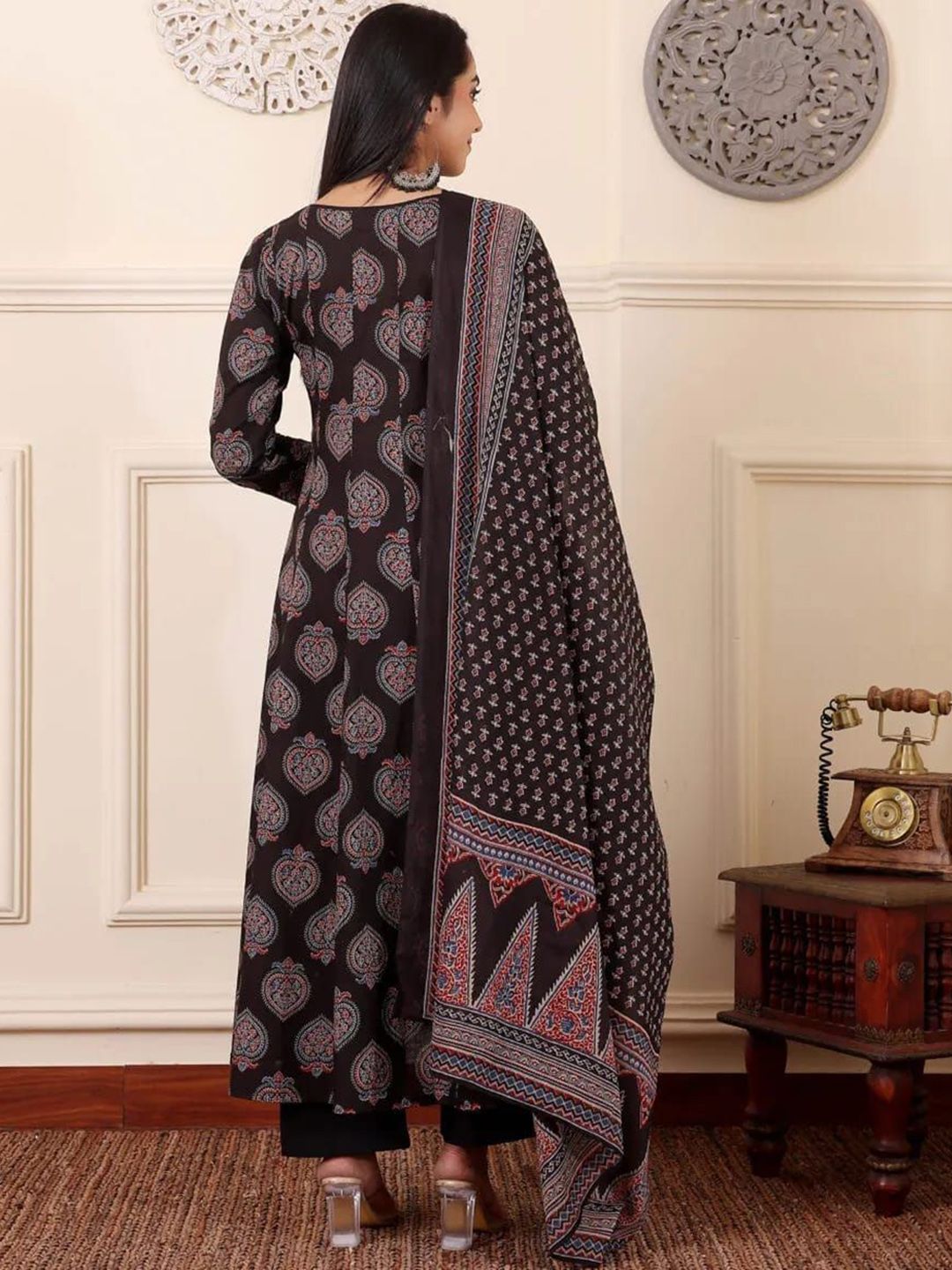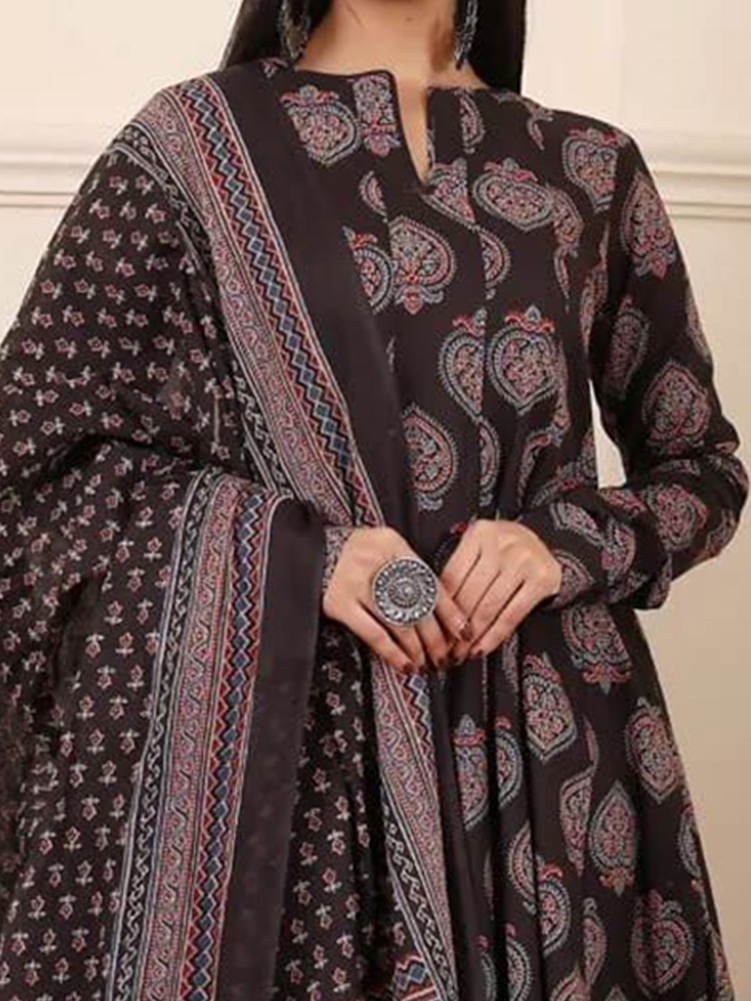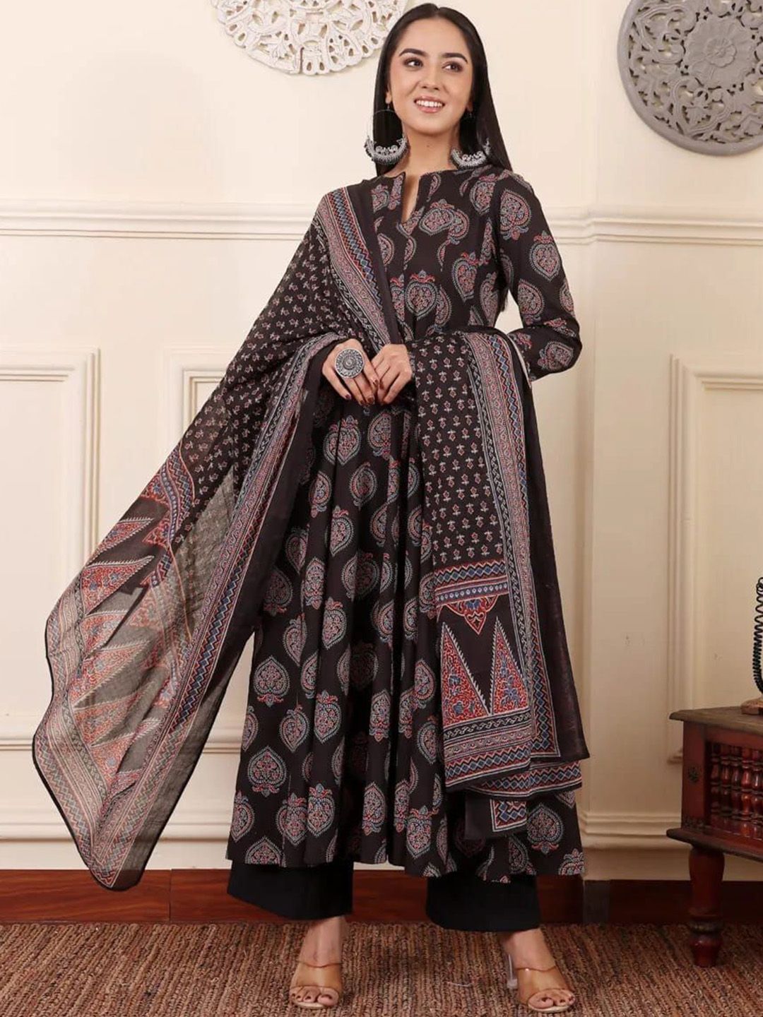 Charnest Floral Printed Panelled Anarkali Kurta With Trouser And Dupatta