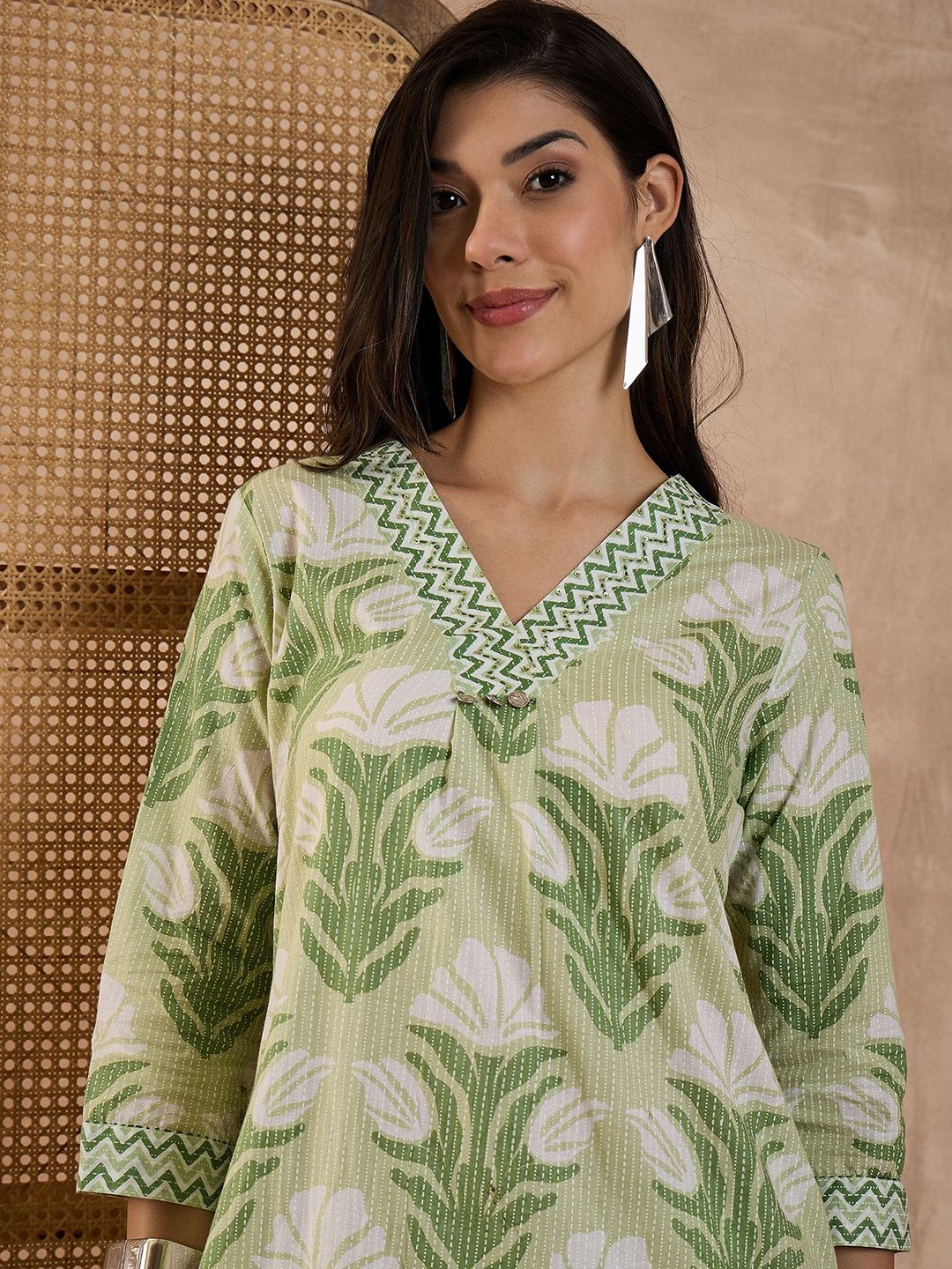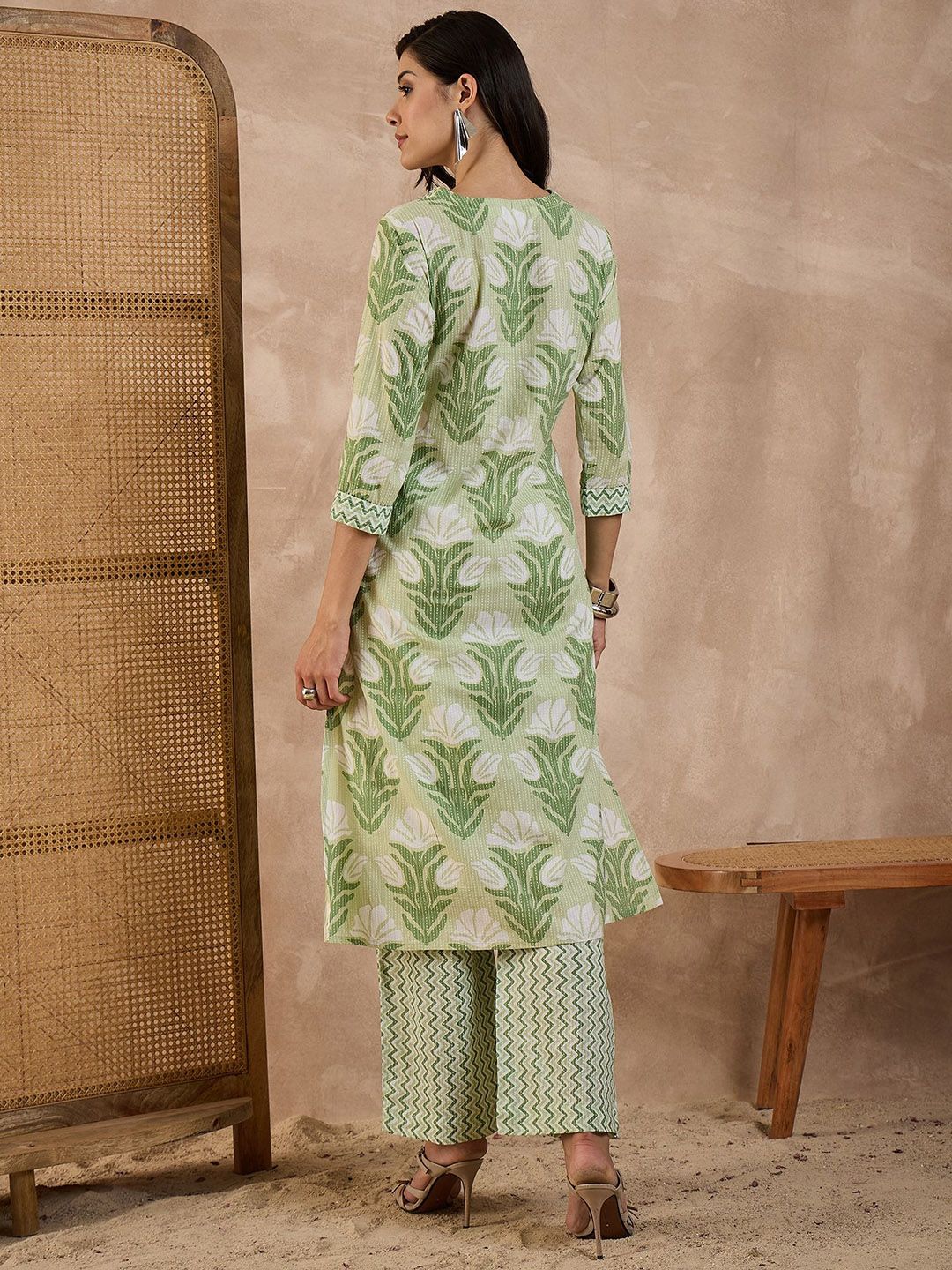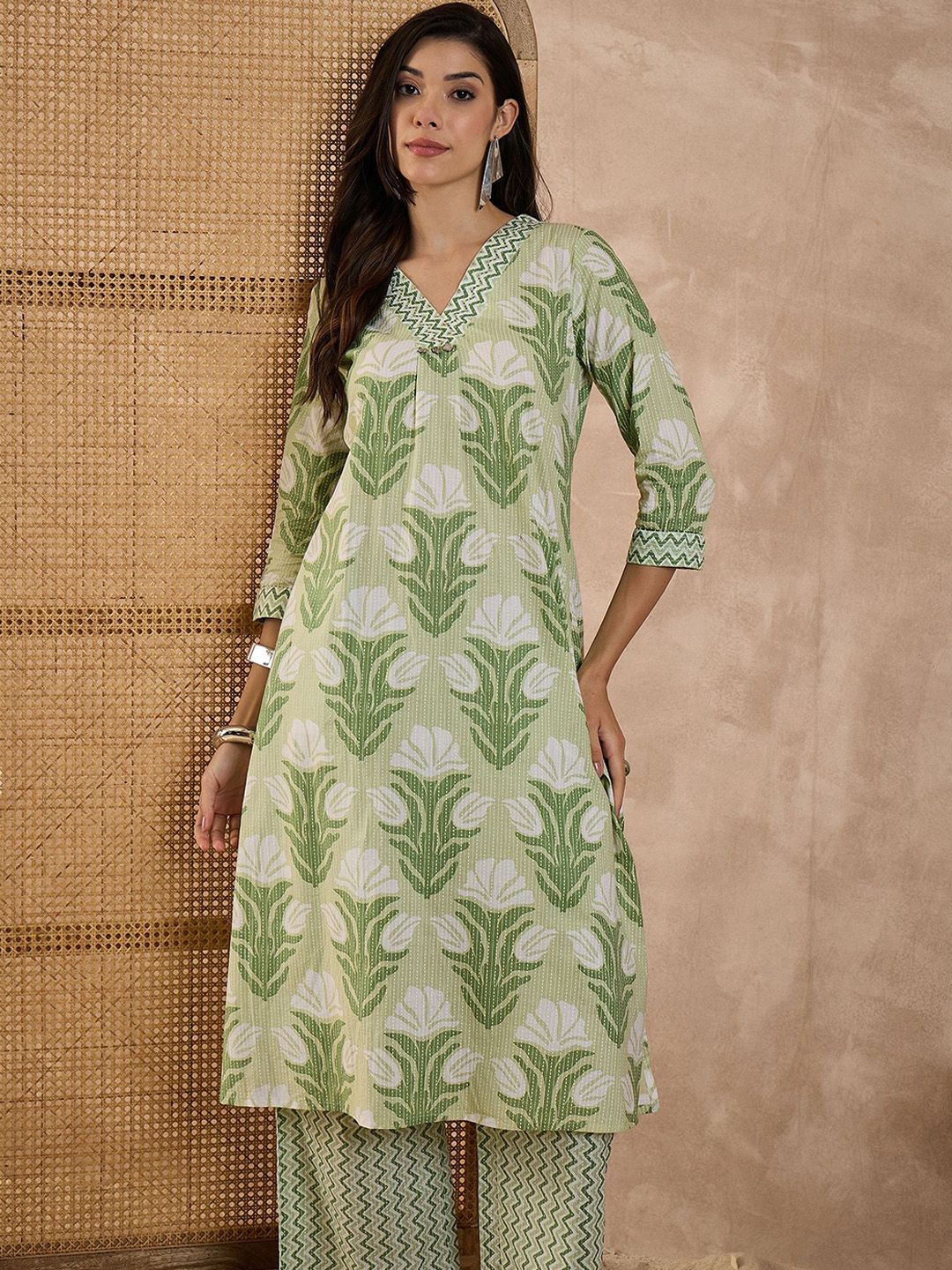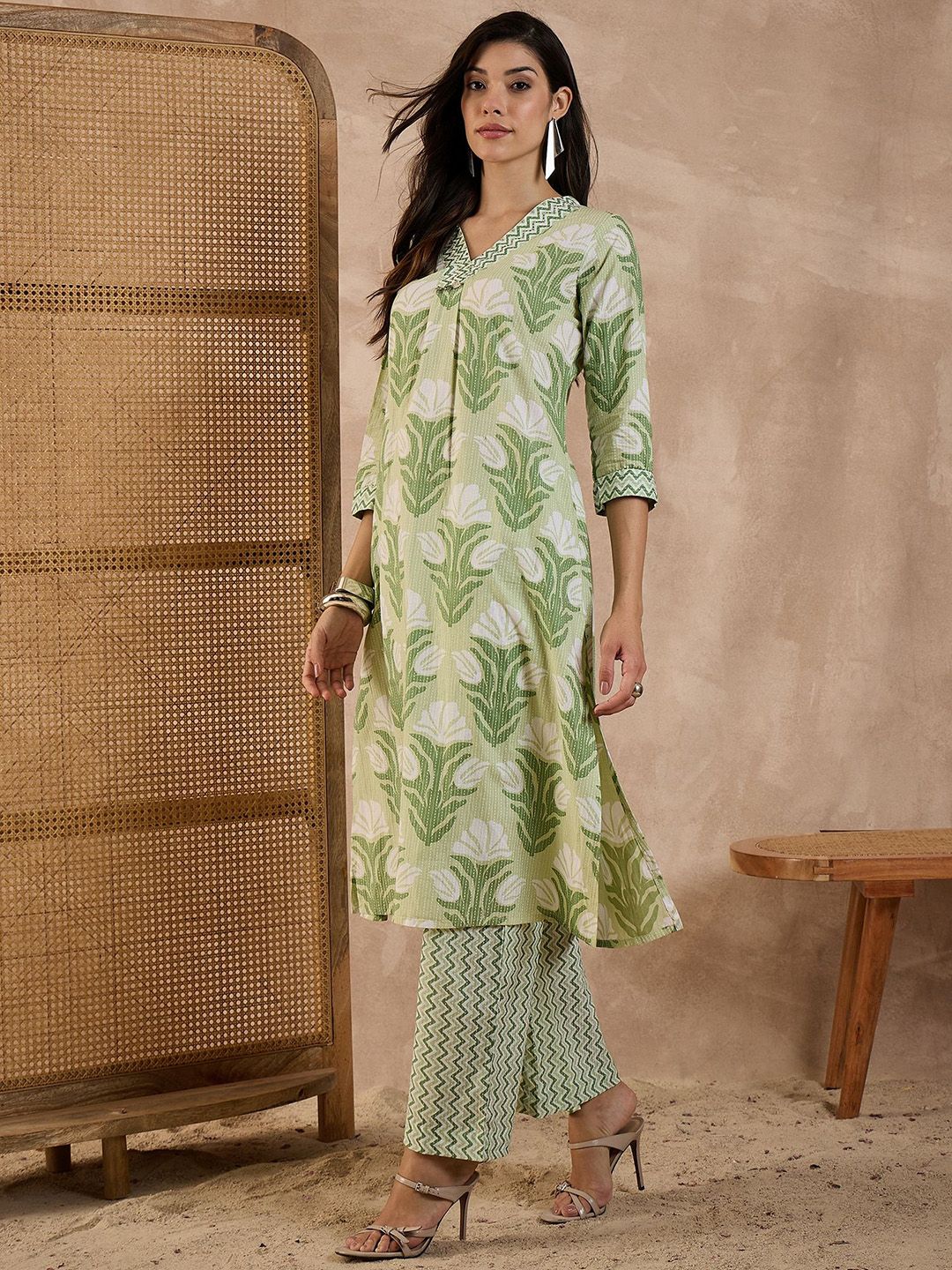 CHETI Women Ethnic Motifs Printed Pure Cotton A-Line Kurta with Palazzo