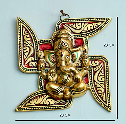 Material: Metal Dimensions: 20 cm x 20 cm x 5 cm Best Gift For Your Loved One Ganesha wall hanging will give an elegant look to your home decor Attractive and eye catcher look with royal finish. Lord Ganesha on Leaf Decorative Wall Sculpture Handmade Traditional Wall Art Decor. A Perfect Gifts: It is a Best Gift for Marriage Anniversary , Parents , Mothers day , Wedding Return Gift , Birthday , House warming , Office / Shop Inaugration , Festive occasions - Like Diwali ,Raksha Bandhan , Grah Pravesh and Corporate Gifts