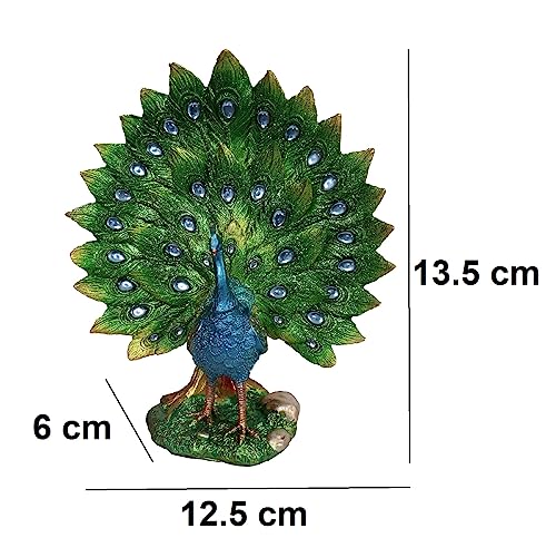 Handmade Peacock Decor: Made of premium resin, waterproof and durable. Hand-painted surfaces make this dancing peacock statue more exquisite, skin details become more realistic. Beautiful Dancing Peacock with Shining Ornaments are ideal to decorate your Living room, Bedroom, Porch, Shelf, Desktop, Office, Cabinet etc.; This elegant showpiece will add a modern fashion vibe to your room. PERFECT GIFTS FOR ALL — This Exquisite Statue Bird Sculpture Craft is a perfect gift for any occasion such as birthday, Christmas, Mother's Day or Father's Day, Diwali, Rakhi, weddings, Valentine's Day, New Year's, etc. Size : 13.5cm*6cm*12.5cm Fragile Product : Handle with Care