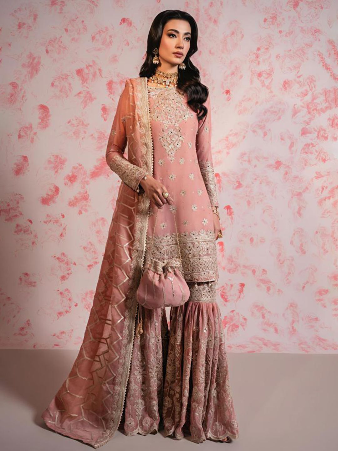CLOTH CLICK Floral Embroidered Straight Kurti With Sharara & Dupatta