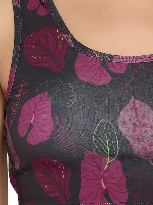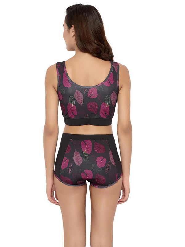 Clovia Women's Pretty Leaf Print Two Piece Swimsuit - Black
