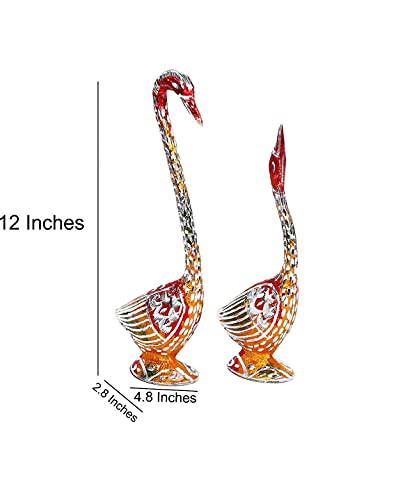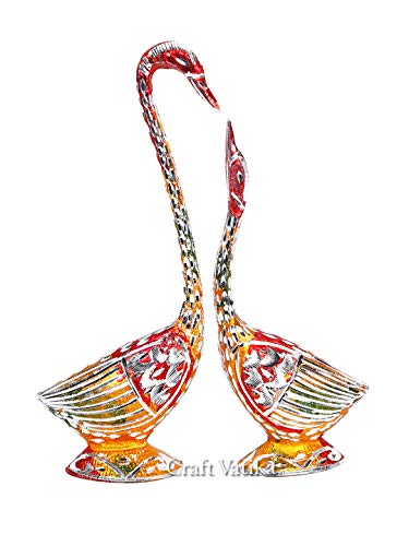 Kissing Swan Birds Pair Metal Sculptures | Lucky Romantic Feng Shui Ideal Love Gift Home Decor Size : 12 Inches Height x 4.8 Inches Length x 2.8 Inches Depth | Material : Metal | Color : Multicolor Made from Premium Quality Material and Handmade in India. Exquisite metal statue set featuring charming love birds, perfect for Hoem decor, anniversary, wedding gifts and home decor. Handcrafted with attention to detail, showcasing intricate craftsmanship and artistic elegance