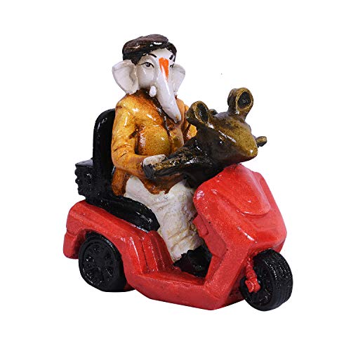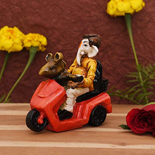 Collectible India Shri Ganesh on Scooter Statue Showpiece - Lord Ganesha Idol for Gift - Handcrafted Ganesha Idol Sculpture | Showpiece for Home Decor and Office Desk (Size 4.5 x 4.5 Inches).