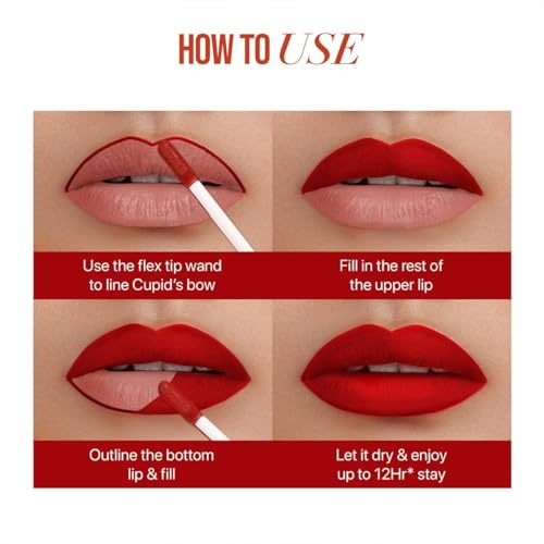 Velvet Matte Finish: Achieve a flawless, smooth matte look that feels lightweight and comfortable on the lips. Rich, highly pigmented formula for bold color that makes an impact with just one swipe. Long-Lasting & Transfer-Resistant: Smudge-proof and transfer-resistant formula designed to stay vibrant and fresh for hours. Dries quickly to a comfortable matte without any sticky residue, making it ideal for all-day wear. Moisturizing Formula: Infused with hydrating ingredients like Vitamin E and natural oils to prevent dryness and keep lips feeling soft.Comes with a precision-tip wand for easy, mess-free application that contours perfectly to your lips. Wide Range of Shades: Available in an array of colors, from everyday nudes to daring reds, ensuring the perfect shade for any look. Made without animal testing and free from animal-derived ingredients, so you can feel good about your choice.