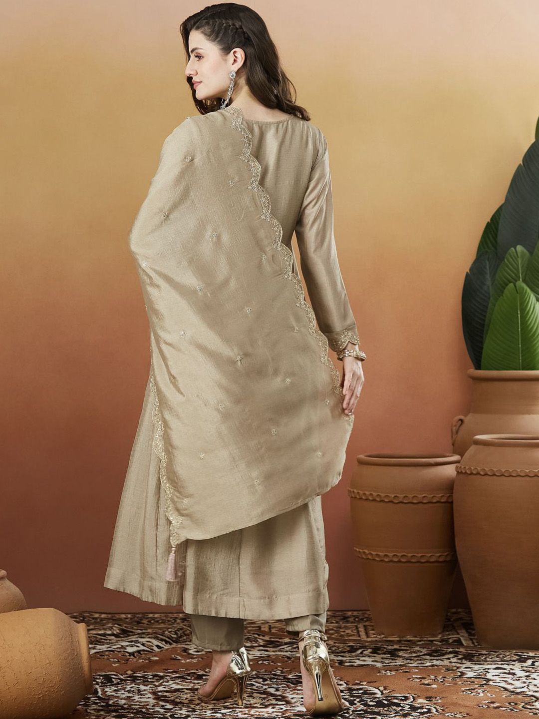 Colors of Earth Embroidered Anarkali Sequinned Kurta With Trousers & Dupatta