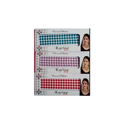 Colors Bindi-Bridal colection Sky Blue Light Violet Red Colour Round Shape Medium Size Bindi for Women & Girls (Size- 4mm) Pack of 3