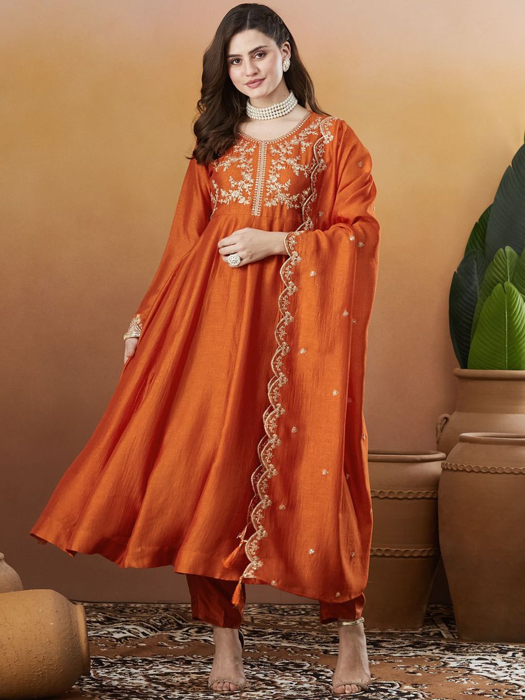 Colors of Earth Women Ethnic Motifs Embroidered Anarkali Kurta with Trousers & Dupatta