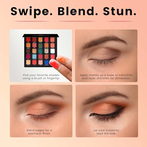 Easy to Blend: This eyeshadow palette contains eyeshadows with a smooth and blendable texture, allowing for a seamless application and making it user-friendly for everyone. Full-Size Mirror: This eyeshadow for women includes a full-size mirror, making it ideal for on-the-go applications. For users who might need to touch up or apply makeup while traveling, this feature is extremely helpful. Highly Pigmented: In this eyeshadow palette, all colors have pigment, ensuring that the eyeshadows provide vibrant and vibrant color payoff with just a small amount of use, giving you a bold and gorgeous look. Matte and Shimmer Shades: The palette comes in two different finishes: matte and shimmer. Matte shades are usually more muted and lack shine, while shimmer shades have reflective particles that give them dimension and sparkle. Vibrant, Subtle, and Nude Colors: A variety of colors are available in this palette. Subtle is for the more muted and appropriate for everyday or modest looks, while vibrant suggests bright and vibrant colors. Nude" colors generally refer to neutral tones.