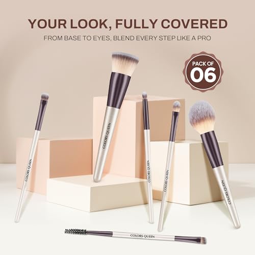 Colors Queen Professional Face & Eye Makeup Brush Set of 6 | Premium Easy to Hold, Ultra Soft Bristles, Face & Eye Makeup Brush Set for Liquid, Cream & Powder Application