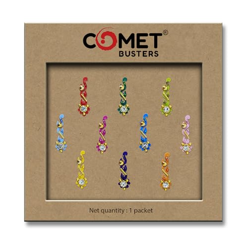 Skin Friendly and Reusable : Each unique design is intricately handcrafted to perfection. We make our exquisite collection of bindis using high-quality material as per set quality standards.Our bindis are 100% handmade, not tested on animals, perfect for skin, safe, non toxic and are reusable Comet Busters Bindis : We have designed our bindis tapping into centuries of tradition and with attention to detail. Our online bindi store has a beautiful collection of Single, Black color, Maroon Color and multi color body bindis and comprises a range of masterfully created minimalist bindi designs. All bindi designs are handcrafted with care and attempt to embody the elegance and grace of a woman. Apply Instruction : To apply a bindi carefully remove it from the plastic and place on your forehead in between the eyebrows. Hold the bindi down for a few seconds or until you feel that your bindi holds firmly in place.The bindi can be reused and worn multiple times or until it loses its ‘stickiness’. You also can use eyelash glue to enhance the stickiness for avoiding fall off. Comet Busters Bindi Styling : We have a wide variety of colors, shapes, sizes and designs. Our bindi includes beadwork, studded stones, pearls and diamonds. Comet Busters Bindis are great to wear for night out, proms, parties, weddings, festivals or any other special occasions. Add these beautiful designed bindis to your cart and experience the rich culture. Comet Busters Bindi Quality : We try to ensure utmost care while designing our bindis, each bindi is handcrafted with precision to give that premium finish, ensuring to draw immediate attention.