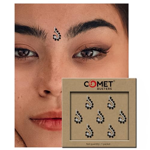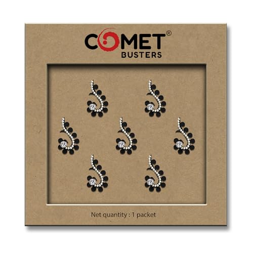 Comet Busters Bindis : We have designed our bindis tapping into centuries of tradition and with attention to detail. Our online bindi store has a beautiful collection of Single, Black color, Maroon Color and multi color body bindis and comprises a range of masterfully created minimalist bindi designs. All bindi designs are handcrafted with care and attempt to embody the elegance and grace of a woman. Skin Friendly and Reusable : Each unique design is intricately handcrafted to perfection. We make our exquisite collection of bindis using high-quality material as per set quality standards.Our bindis are 100% handmade, not tested on animals, perfect for skin, safe, non toxic and are reusable Apply Instruction : To apply a bindi carefully remove it from the plastic and place on your forehead in between the eyebrows. Hold the bindi down for a few seconds or until you feel that your bindi holds firmly in place.The bindi can be reused and worn multiple times or until it loses its ‘stickiness’. You also can use eyelash glue to enhance the stickiness for avoiding fall off. Comet Busters Bindi Styling : We have a wide variety of colors, shapes, sizes and designs. Our bindi includes beadwork, studded stones, pearls and diamonds. Comet Busters Bindis are great to wear for night out, proms, parties, weddings, festivals or any other special occasions. Add these beautiful designed bindis to your cart and experience the rich culture. Comet Busters Bindi Quality : We try to ensure utmost care while designing our bindis, each bindi is handcrafted with precision to give that premium finish, ensuring to draw immediate attention.