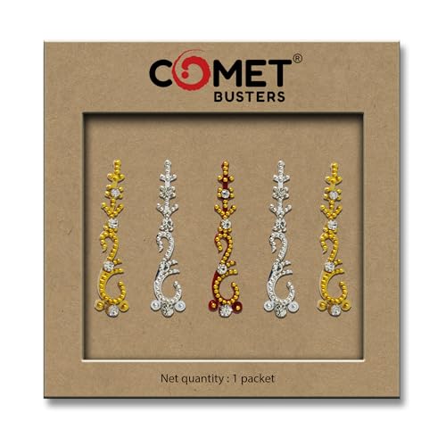 Skin Friendly and Reusable : Each unique design is intricately handcrafted to perfection. We make our exquisite collection of bindis using high-quality material as per set quality standards.Our bindis are 100% handmade, not tested on animals, perfect for skin, safe, non toxic and are reusable Comet Busters Bindis : We have designed our bindis tapping into centuries of tradition and with attention to detail. Our online bindi store has a beautiful collection of Single, Black color, Maroon Color and multi color body bindis and comprises a range of masterfully created minimalist bindi designs. All bindi designs are handcrafted with care and attempt to embody the elegance and grace of a woman. Apply Instruction : To apply a bindi carefully remove it from the plastic and place on your forehead in between the eyebrows. Hold the bindi down for a few seconds or until you feel that your bindi holds firmly in place.The bindi can be reused and worn multiple times or until it loses its ‘stickiness’. You also can use eyelash glue to enhance the stickiness for avoiding fall off. Comet Busters Bindi Styling : We have a wide variety of colors, shapes, sizes and designs. Our bindi includes beadwork, studded stones, pearls and diamonds. Comet Busters Bindis are great to wear for night out, proms, parties, weddings, festivals or any other special occasions. Add these beautiful designed bindis to your cart and experience the rich culture. Comet Busters Bindi Quality : We try to ensure utmost care while designing our bindis, each bindi is handcrafted with precision to give that premium finish, ensuring to draw immediate attention.