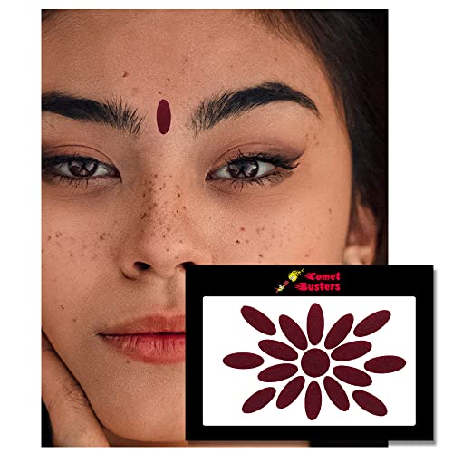 Skin Friendly and Reusable : Each unique design is intricately handcrafted to perfection. We make our exquisite collection of bindis using high-quality material as per set quality standards.Our bindis are 100% handmade, not tested on animals, perfect for skin, safe, non toxic and are reusable Comet Busters Bindis : We have designed our bindis tapping into centuries of tradition and with attention to detail. Our online bindi store has a beautiful collection of Single, Black color, Maroon Color and multi color body bindis and comprises a range of masterfully created minimalist bindi designs. All bindi designs are handcrafted with care and attempt to embody the elegance and grace of a woman. Apply Instruction : To apply a bindi carefully remove it from the plastic and place on your forehead in between the eyebrows. Hold the bindi down for a few seconds or until you feel that your bindi holds firmly in place.The bindi can be reused and worn multiple times or until it loses its ‘stickiness’. You also can use eyelash glue to enhance the stickiness for avoiding fall off. Comet Busters Bindi Styling : We have a wide variety of colors, shapes, sizes and designs. Our bindi includes beadwork, studded stones, pearls and diamonds. Comet Busters Bindis are great to wear for night out, proms, parties, weddings, festivals or any other special occasions. Add these beautiful designed bindis to your cart and experience the rich culture. Comet Busters Bindi Quality : We try to ensure utmost care while designing our bindis, each bindi is handcrafted with precision to give that premium finish, ensuring to draw immediate attention.Comet Busters Bindi Quality : We try to ensure utmost care while designing our bindis, each bindi is handcrafted with precision to give that premium finish, ensuring to draw immediate attention.