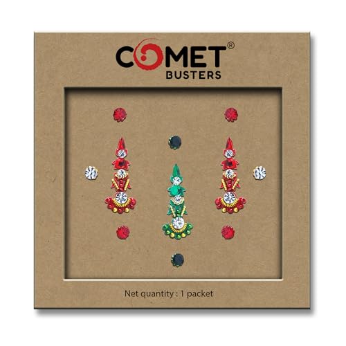 Skin Friendly and Reusable : Each unique design is intricately handcrafted to perfection. We make our exquisite collection of bindis using high-quality material as per set quality standards.Our bindis are 100% handmade, not tested on animals, perfect for skin, safe, non toxic and are reusable Comet Busters Bindis : We have designed our bindis tapping into centuries of tradition and with attention to detail. Our online bindi store has a beautiful collection of Single, Black color, Maroon Color and multi color body bindis and comprises a range of masterfully created minimalist bindi designs. All bindi designs are handcrafted with care and attempt to embody the elegance and grace of a woman. Apply Instruction : To apply a bindi carefully remove it from the plastic and place on your forehead in between the eyebrows. Hold the bindi down for a few seconds or until you feel that your bindi holds firmly in place.The bindi can be reused and worn multiple times or until it loses its ‘stickiness’. You also can use eyelash glue to enhance the stickiness for avoiding fall off. Comet Busters Bindi Styling : We have a wide variety of colors, shapes, sizes and designs. Our bindi includes beadwork, studded stones, pearls and diamonds. Comet Busters Bindis are great to wear for night out, proms, parties, weddings, festivals or any other special occasions. Add these beautiful designed bindis to your cart and experience the rich culture. Comet Busters Bindi Quality : We try to ensure utmost care while designing our bindis, each bindi is handcrafted with precision to give that premium finish, ensuring to draw immediate attention.