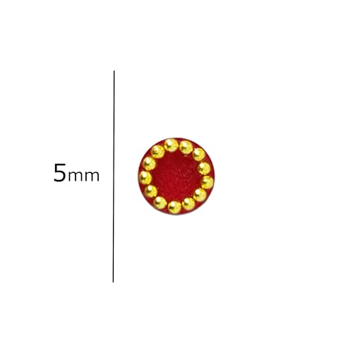 Comet Busters Traditional Red and Maroon Round Bindi with Gold Beads Border (5 mm) (BV241)