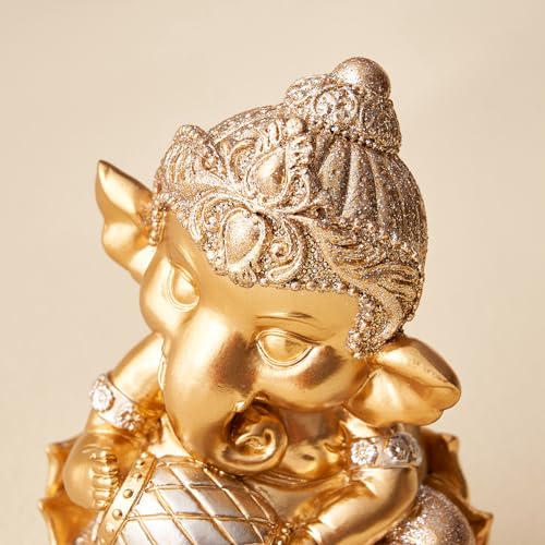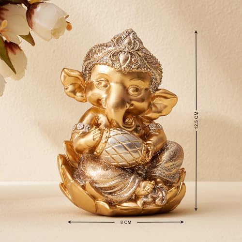 Pack Content : 1 Ganesha with Dholak Figurine Dimensions : 8 cm x 12.5 cm Polyresin Ganesha figurines serve as reminders of these positive attributes, making them meaningful additions to any space. These figurines are versatile decor pieces that complement various interior design styles, including traditional, contemporary, eclectic, or bohemian decor. They can be displayed on shelves, mantels, desks, or altars.