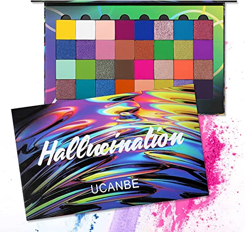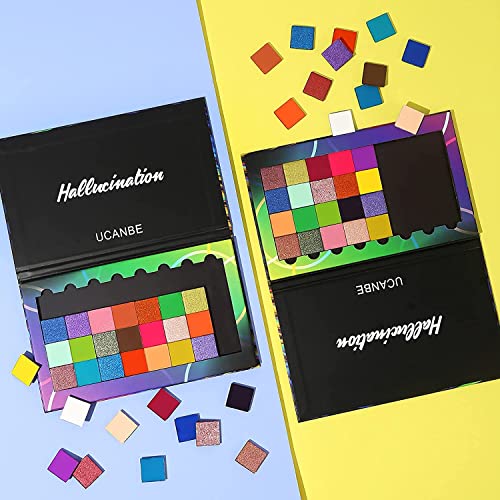COSLUXE UCANBE 32 Colors Eyeshadow Palette, Refillable Removable Eye Shadow With Magnetic Palette,Highly Pigmented Long lasting Rainbow Makeup Palettes, Hallucination