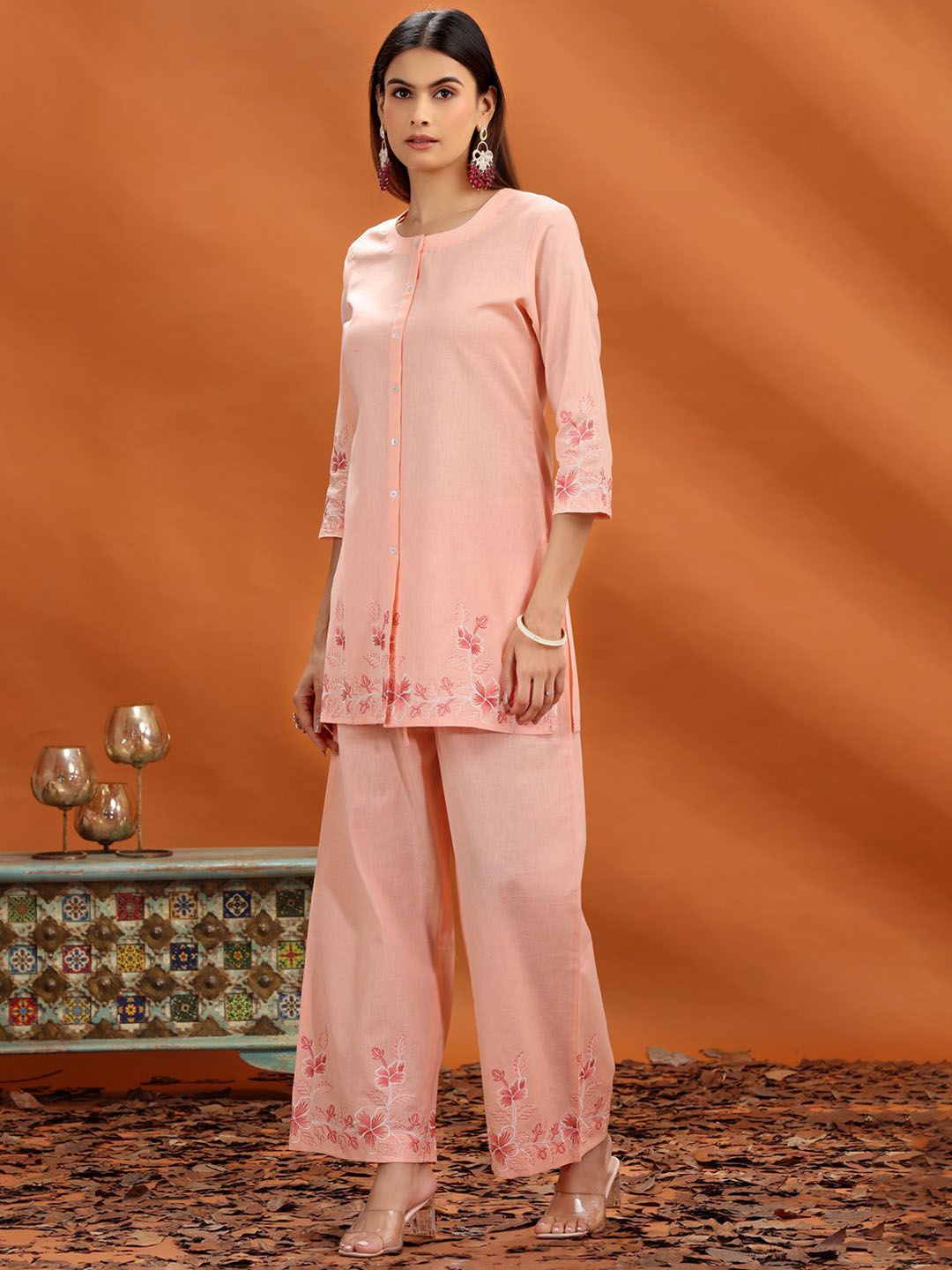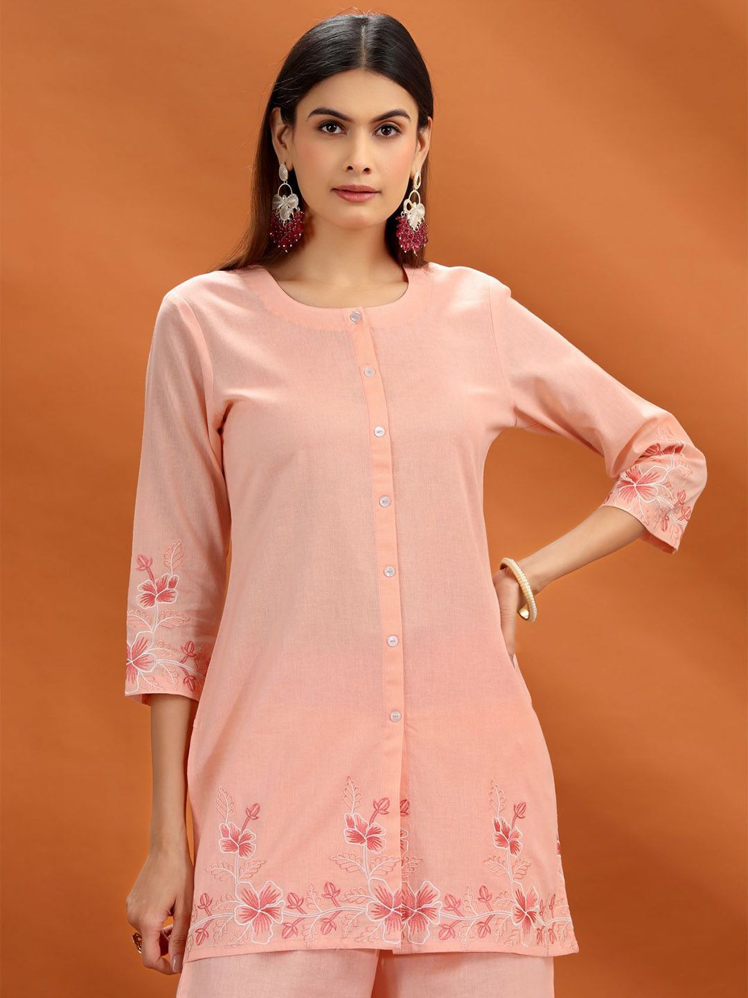 COTTON CULTURE Floral Embroidered Thread Work Pure Cotton Kurti With Trouser