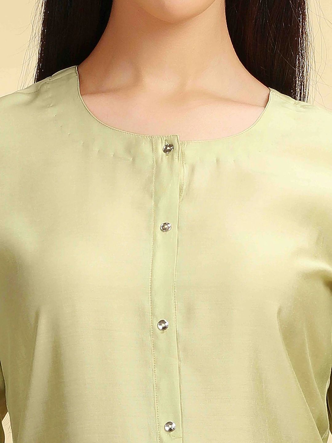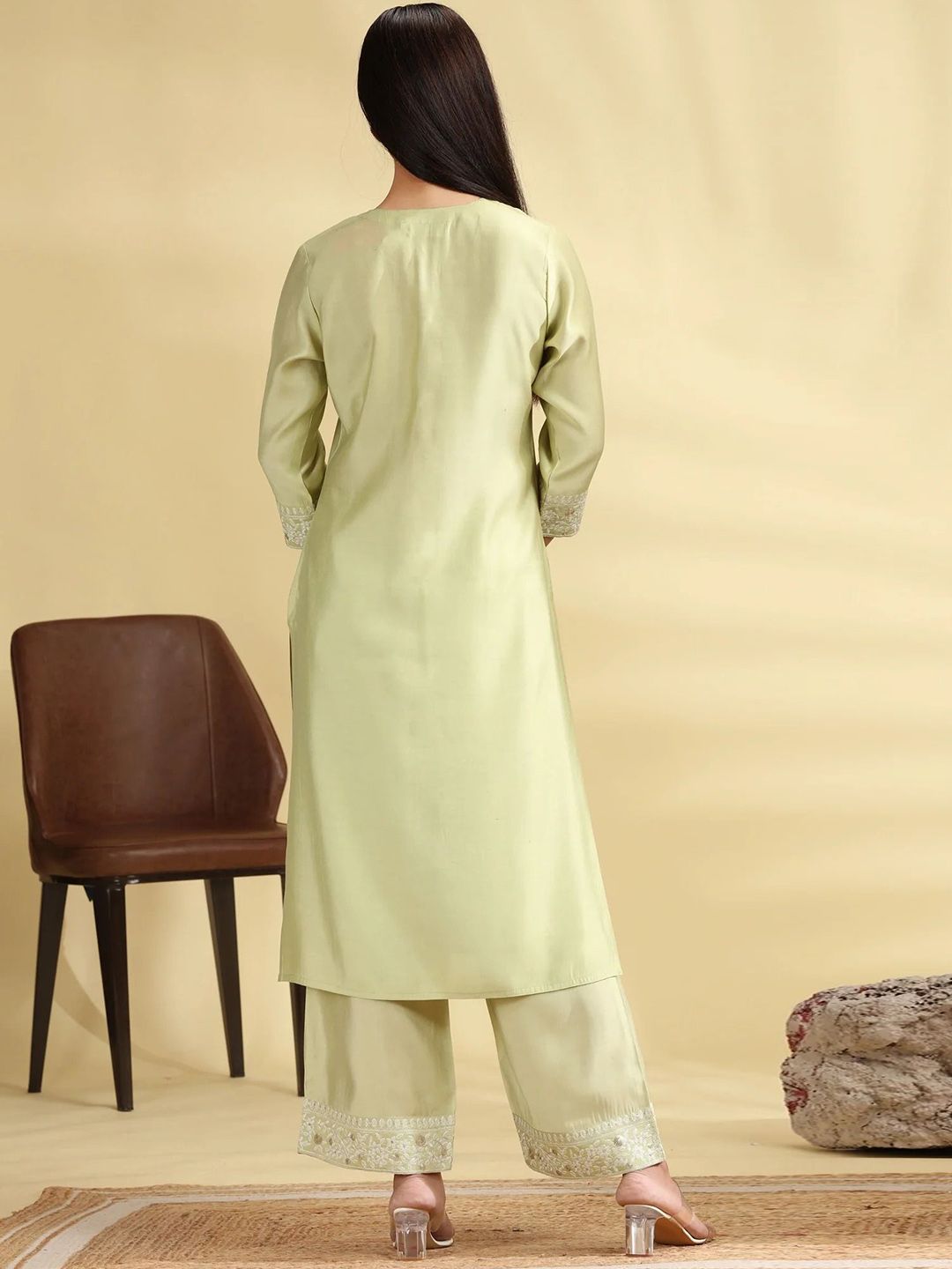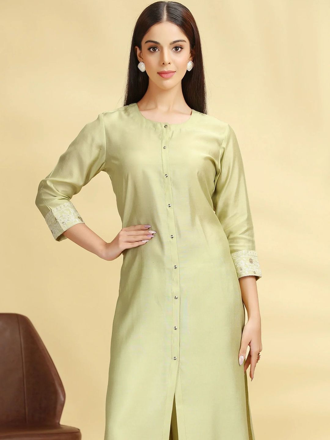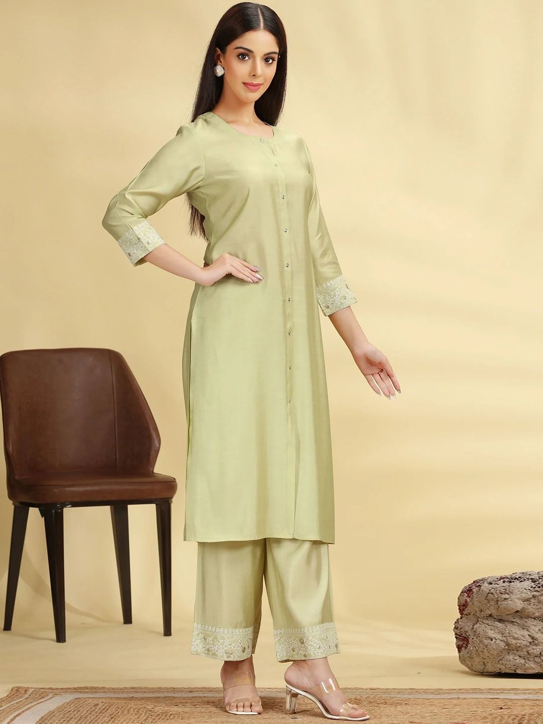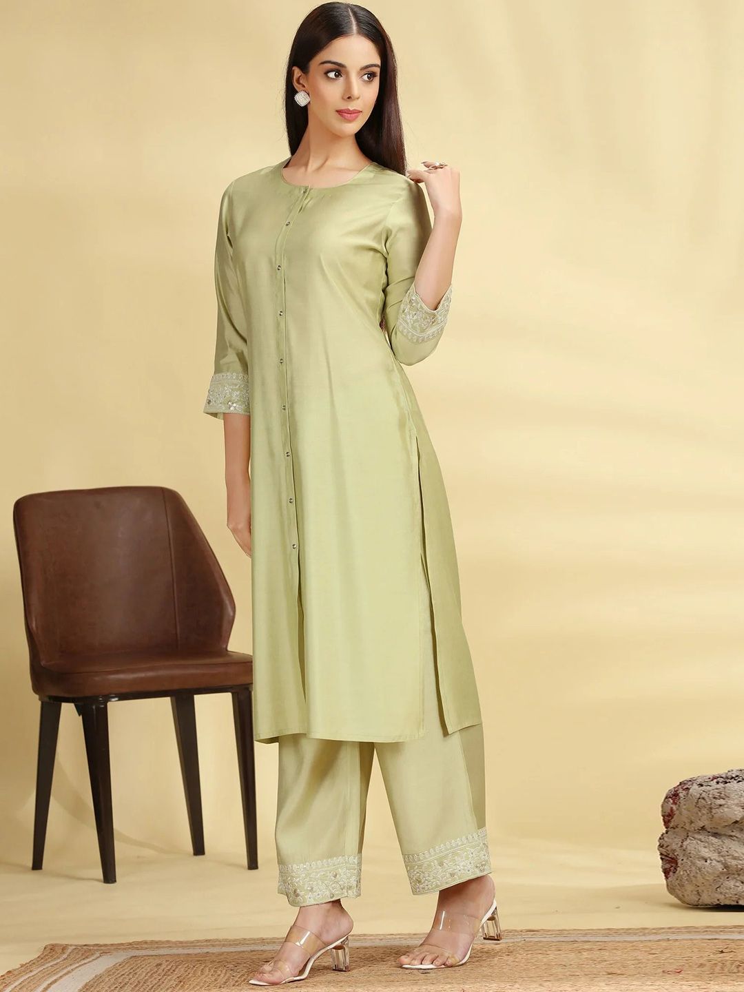 COTTON CULTURE Round Neck Pure Silk Straight Kurta With Palazzo