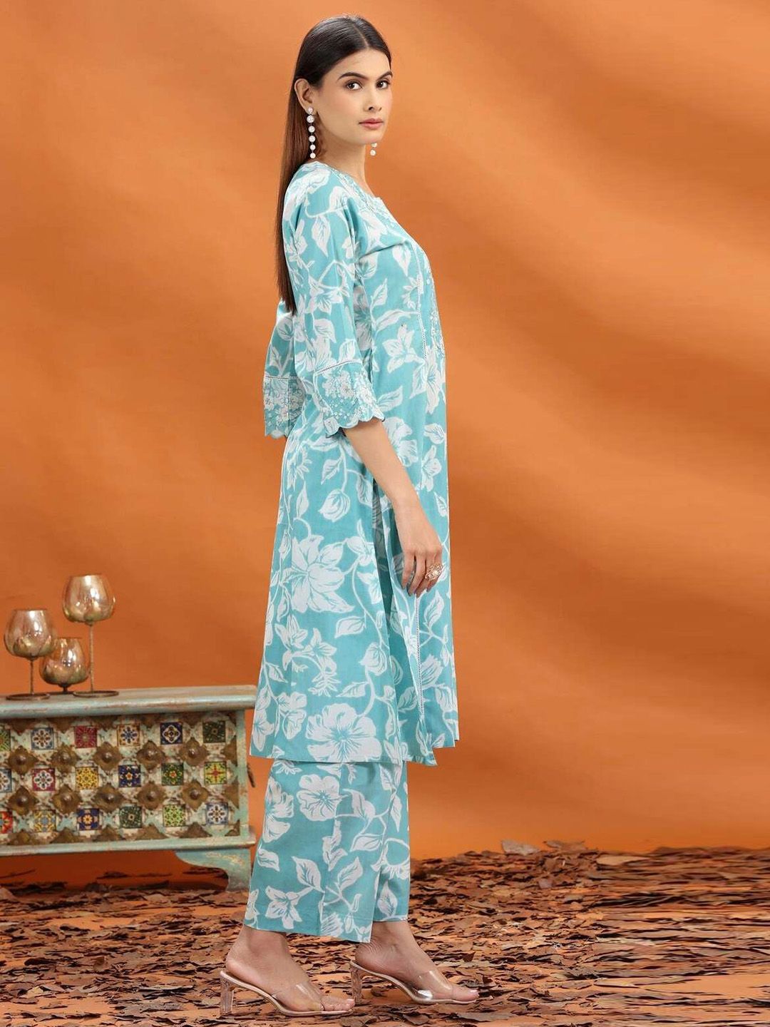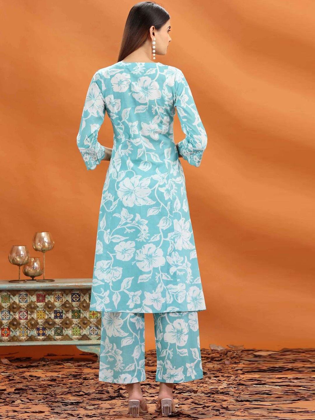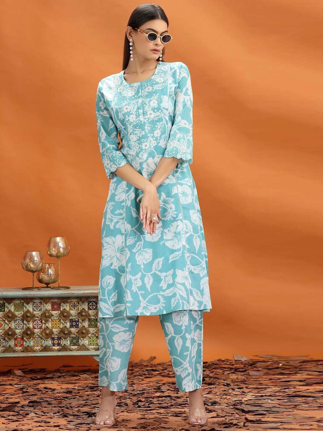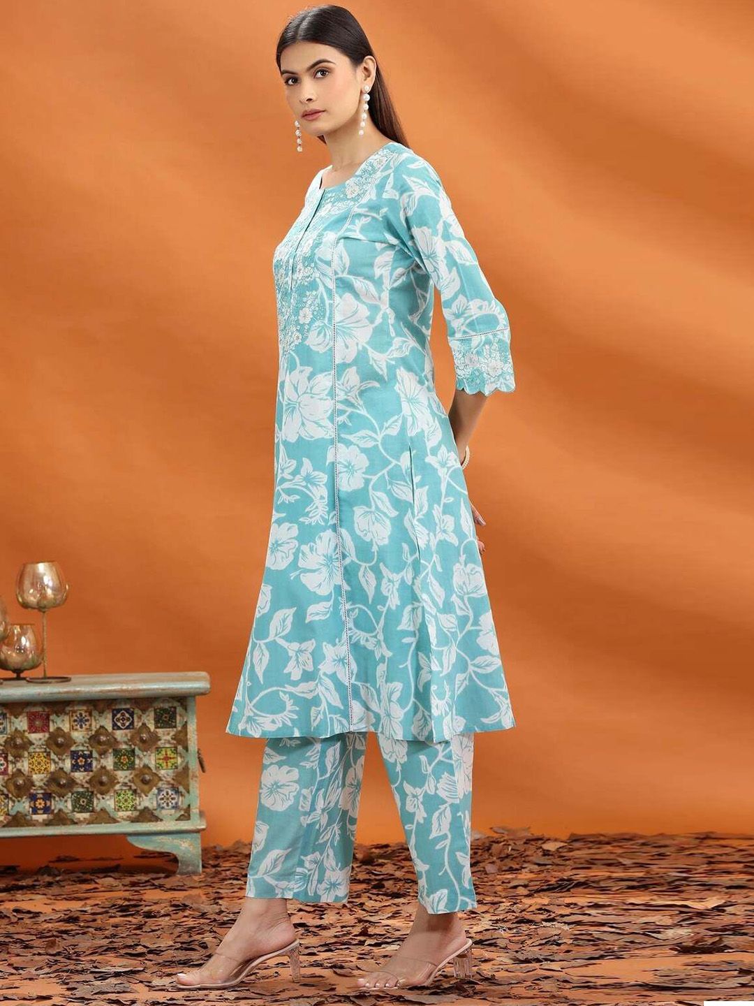 COTTON CULTURE Women Jaipuri Cotton Embroidered Straight Kurta and Pant Set