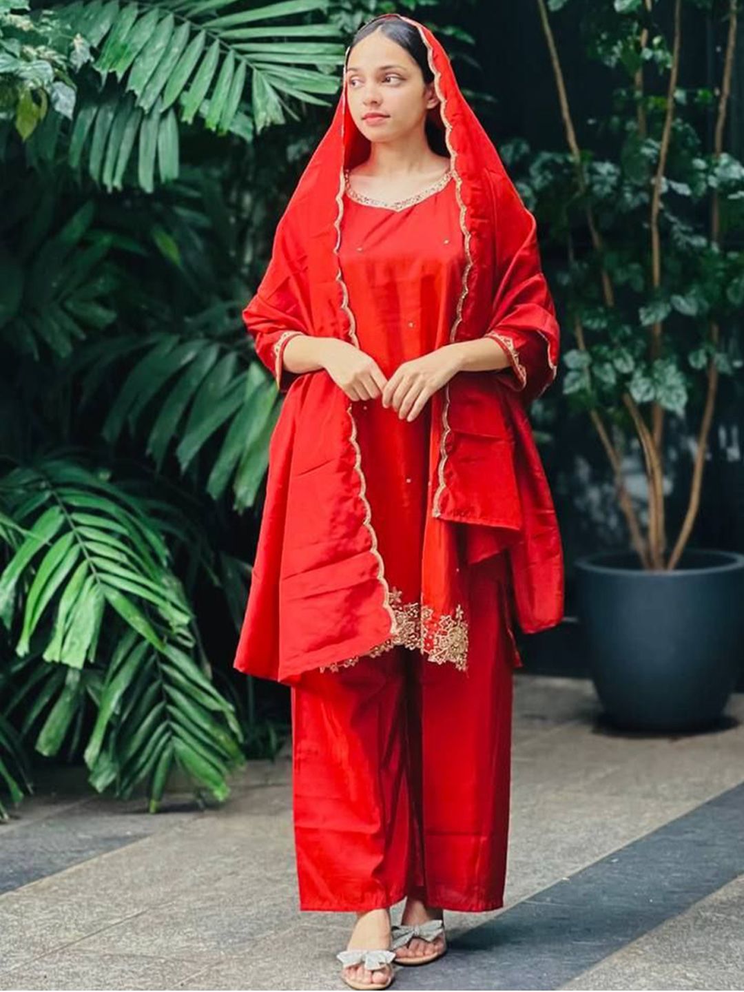 CRAFTLE Women Floral Embroidered Regular Kurta with Palazzos & With Dupatta