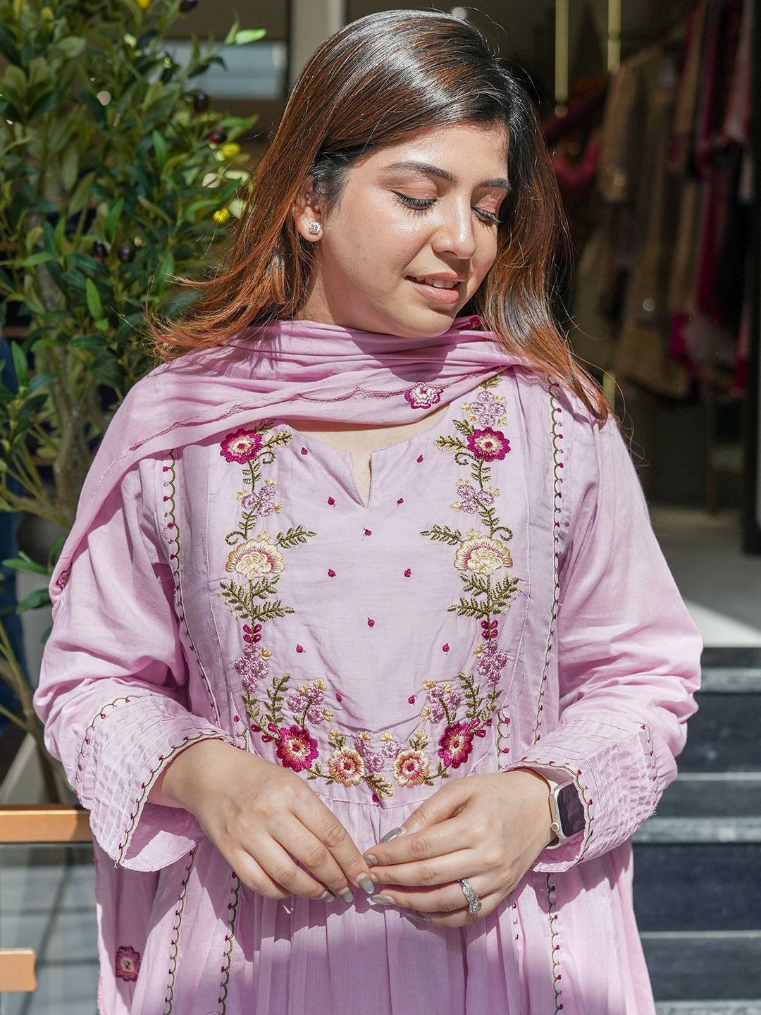 Buy this stylish CREEPER Floral Embroidered Notch Neck Thread Work A-Line Kurta With Trousers & Dupatta at Marincart Nepal. This product offers great quality and value. Perfect for those looking for the latest trends in fashion. Get yours now at unbeatable prices.