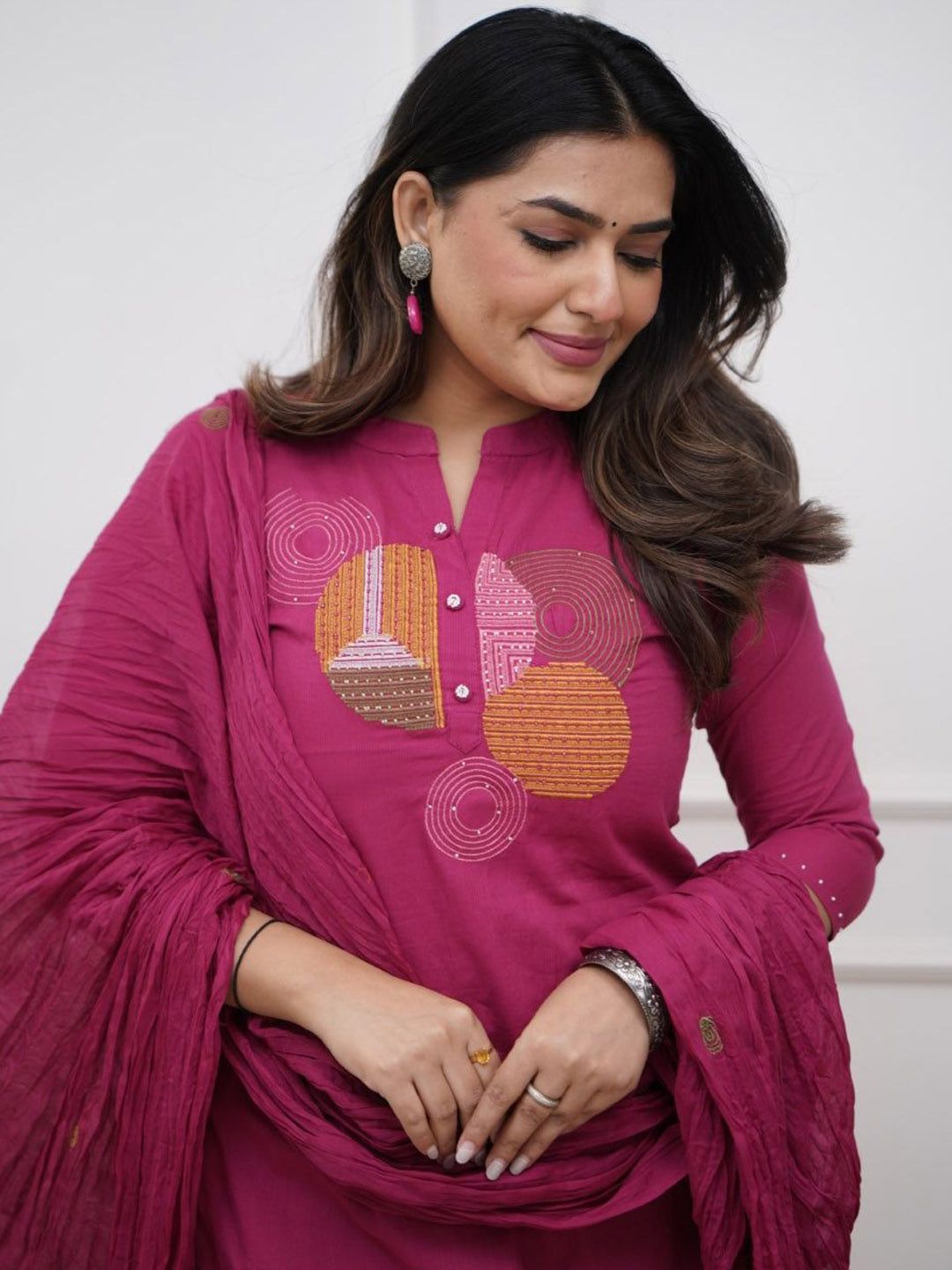 CREEPER Geometric Embroidered Mandarin Collar Beads & Stones Kurta With Trousers & Dupatta