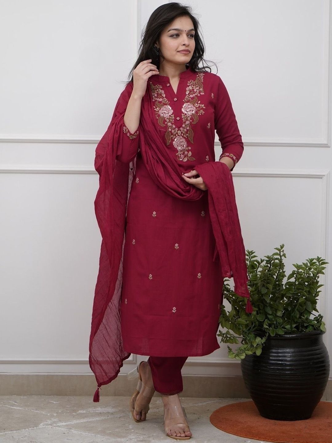 CREEPER Women Embroidered Kurta with Trousers & Dupatta