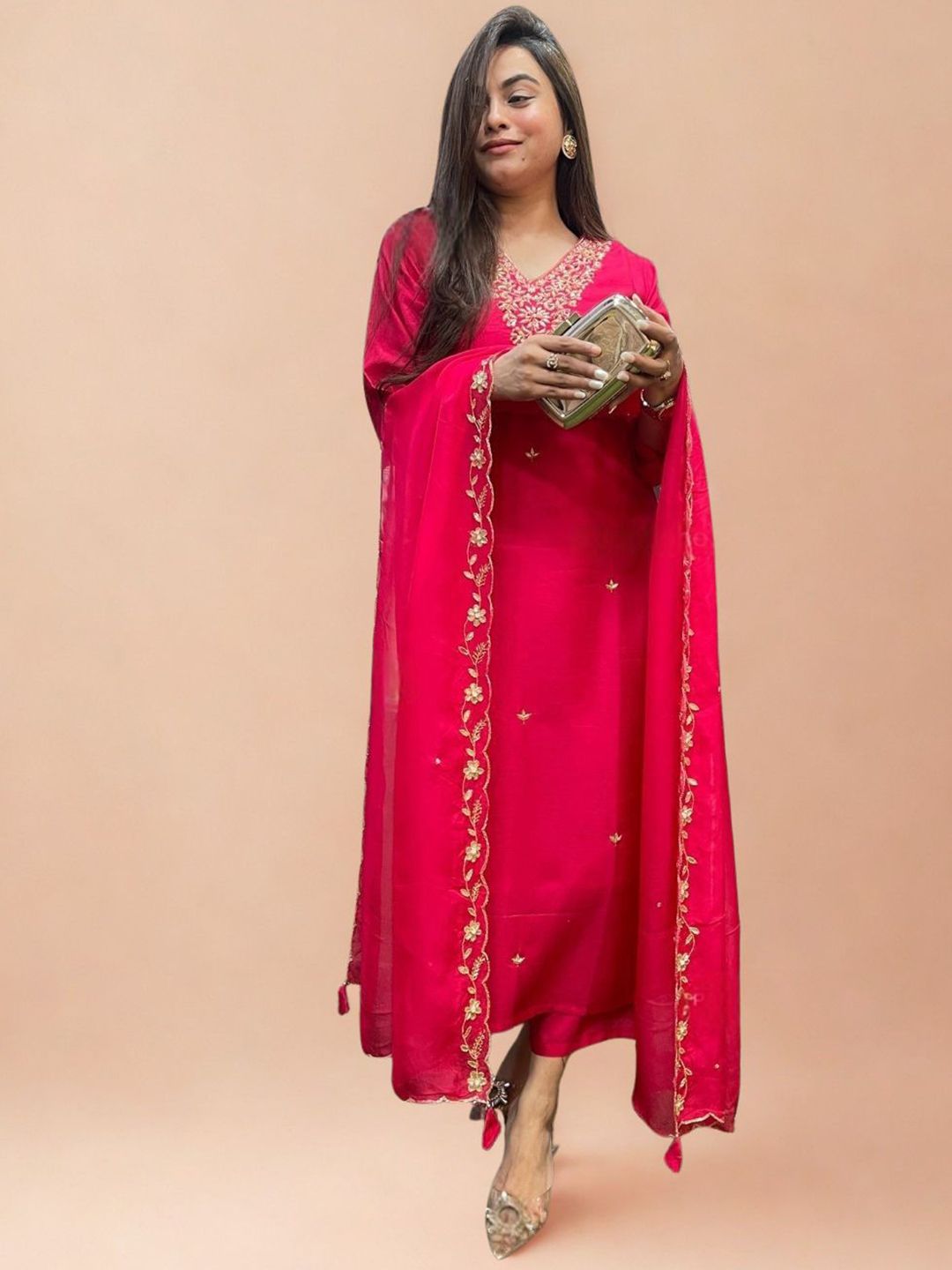 CREEPER Women Ethnic Motifs Embroidered Thread Work Kurta with Trousers & Dupatta
