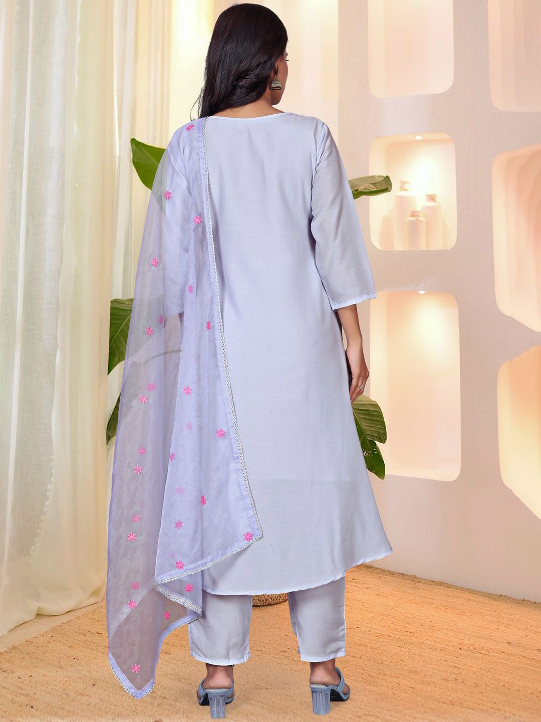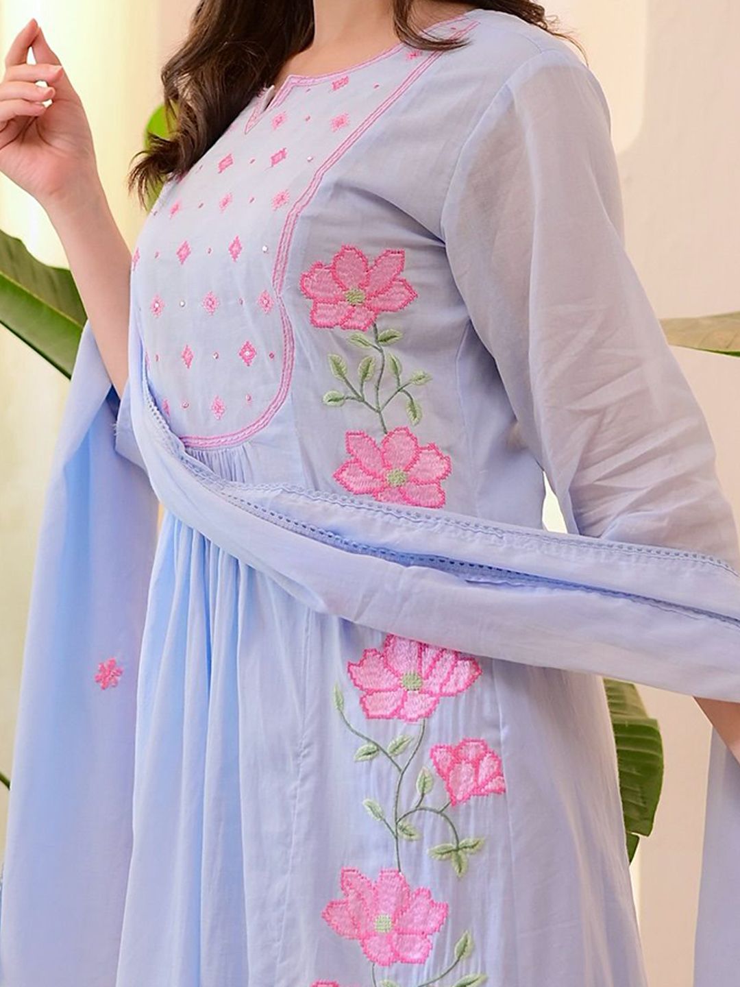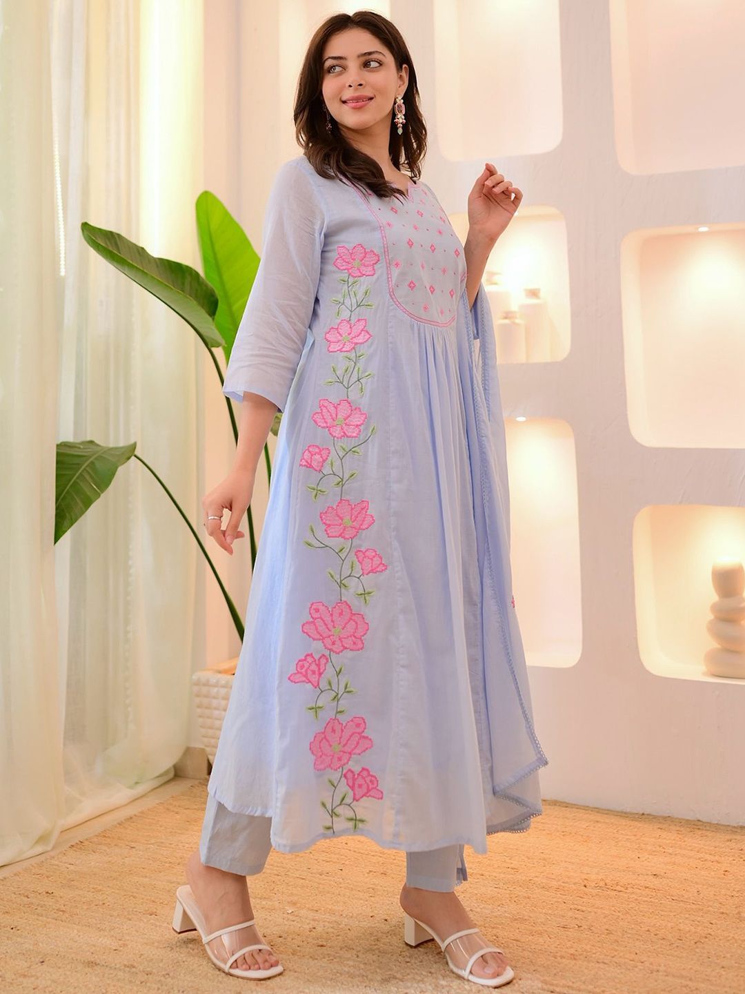 CREEPER Women Floral Embroidered Anarakli Thread Work Kurta With Trousers & Dupatta