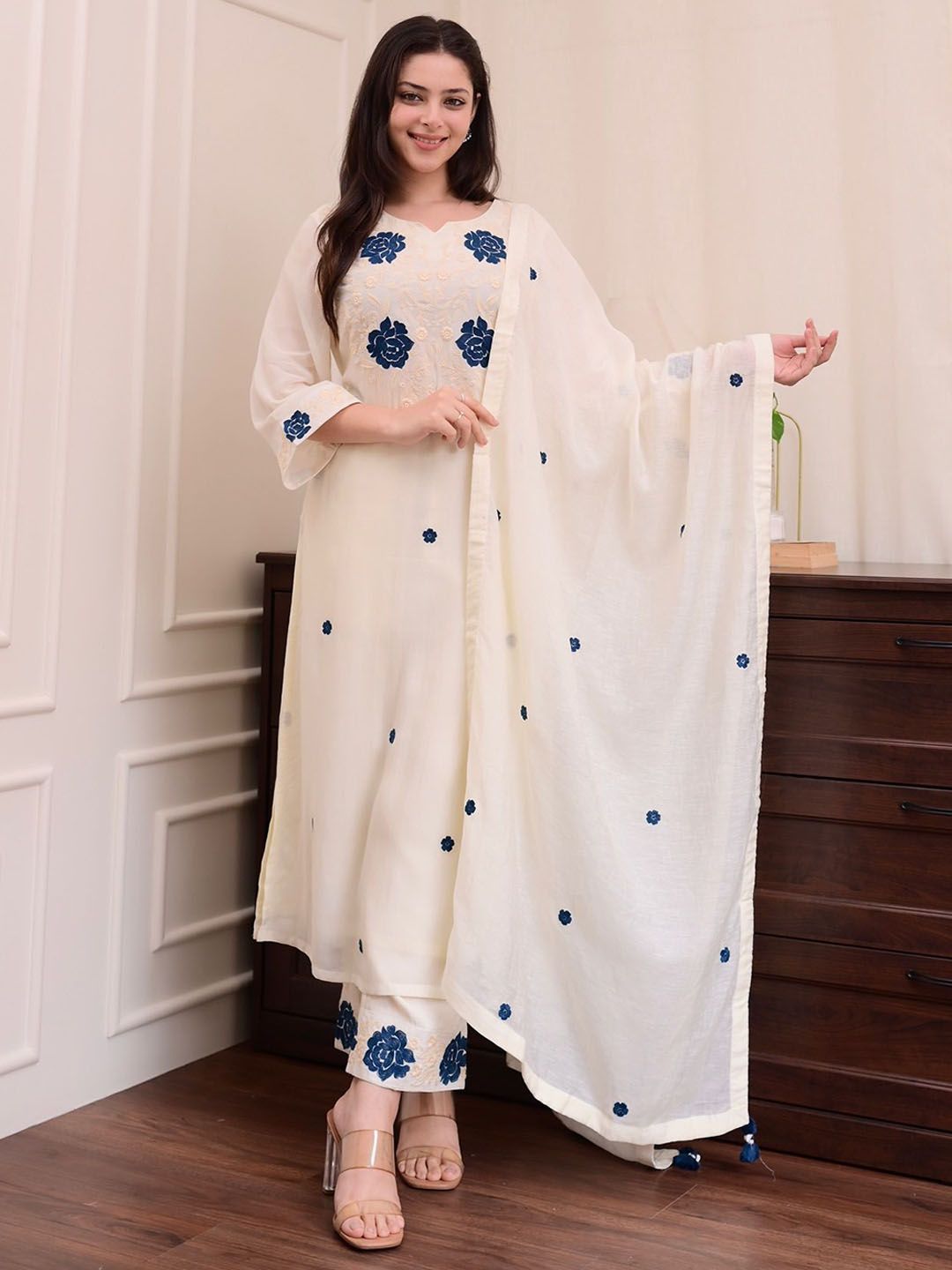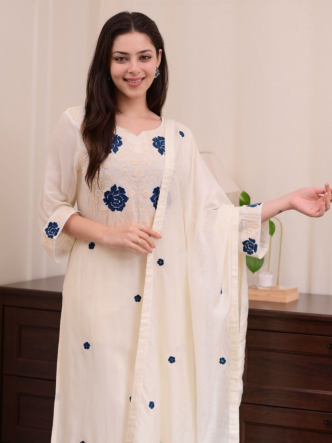 CREEPER Women Floral Embroidered Kurta with Palazzo & Dupatta